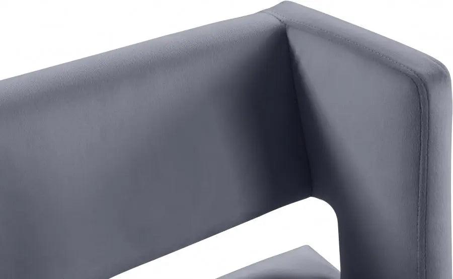 Añade la silla de comedor Caleb de terciopelo gris a tu comedor para disfrutar de la máxima comodidad y estilo. Esta silla cuenta con un asiento cuadrado y un respaldo bajo, abierto en la parte inferior, hacia atrás y a los lados. Sus cuatro patas cuadradas de hierro dorado cepillado proporcionan soporte y estabilidad, mientras que el suave terciopelo y el acolchado de la silla le aportan un aire de lujo. Varias mesas disponibles complementan a la perfección esta pieza contemporánea.