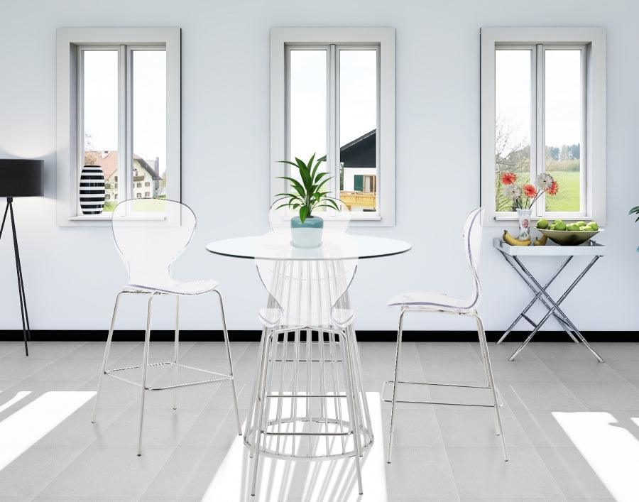 Dale un toque moderno a la encimera de tu cocina o bar con este taburete Clarion. Su asiento y respaldo translúcidos aportan un toque audaz y contemporáneo a tu espacio, gracias a la resistencia del policarbonato Lucite. Su clásica base de metal con acabado cromado contrasta a la perfección con la superficie translúcida, dándole a tu espacio un aire moderno, básico y sencillo. Un reposapiés en la base te permite descansar los pies mientras esperas tu bebida helada.