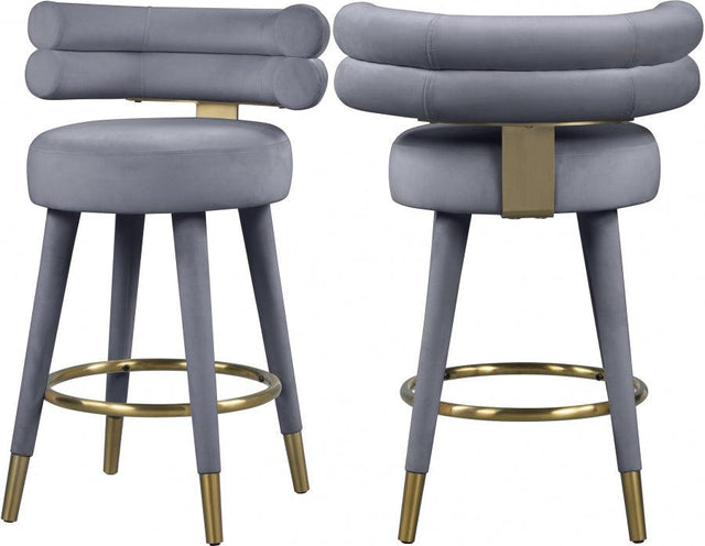 Meridian Furniture - Juego de 2 taburetes altos Fitzroy de terciopelo gris - 798Grey-C