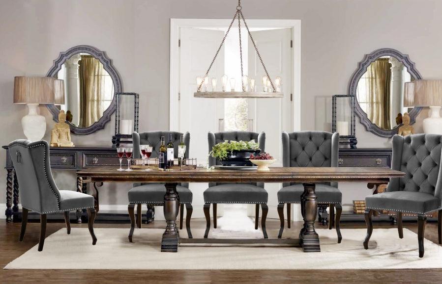 Juego de 2 sillas de comedor Suri de terciopelo gris - 772Grey-C | Meridian está agotado y se enviará tan pronto como vuelva a estar disponible.