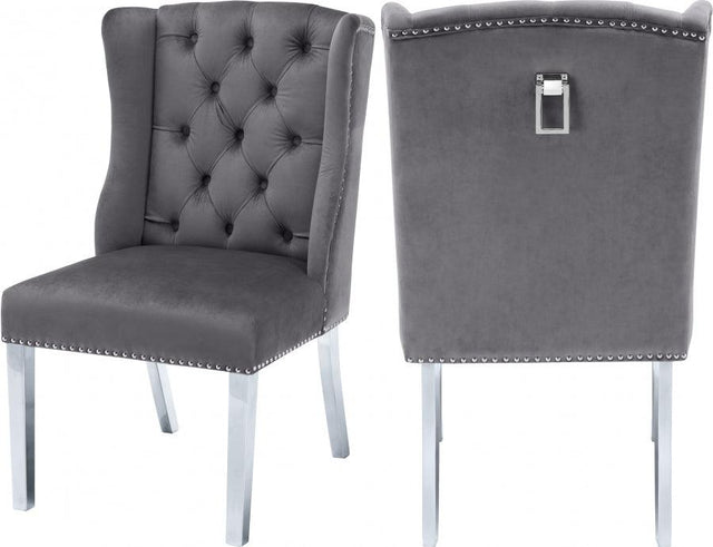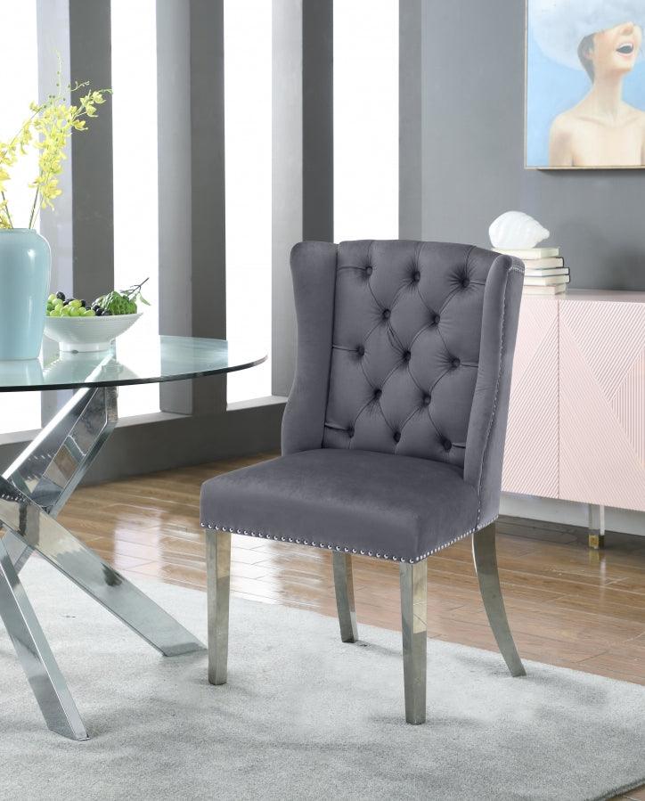 Meridian Furniture - Juego de 2 sillas de comedor de terciopelo Suri en gris - 809Grey-C