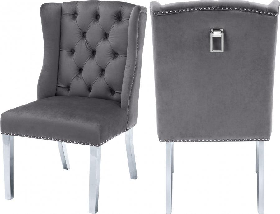 Juego de 2 sillas de comedor Suri de terciopelo gris - 809Grey-C | Meridian