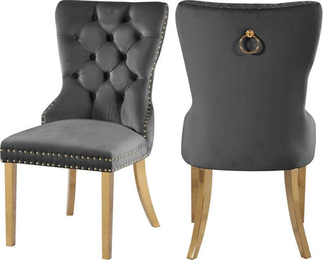 Juego de 2 sillas de comedor Carmen de terciopelo gris - 812Grey-C | Meridian