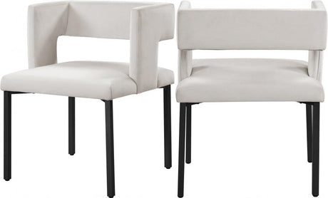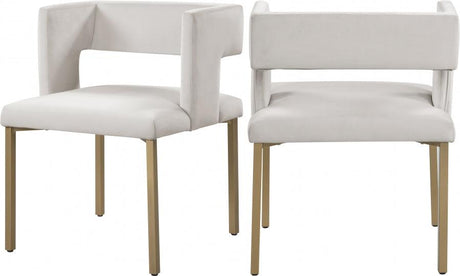 Juego de 2 sillas de comedor Caleb de terciopelo en color crema - 967Cream-C | Meridian