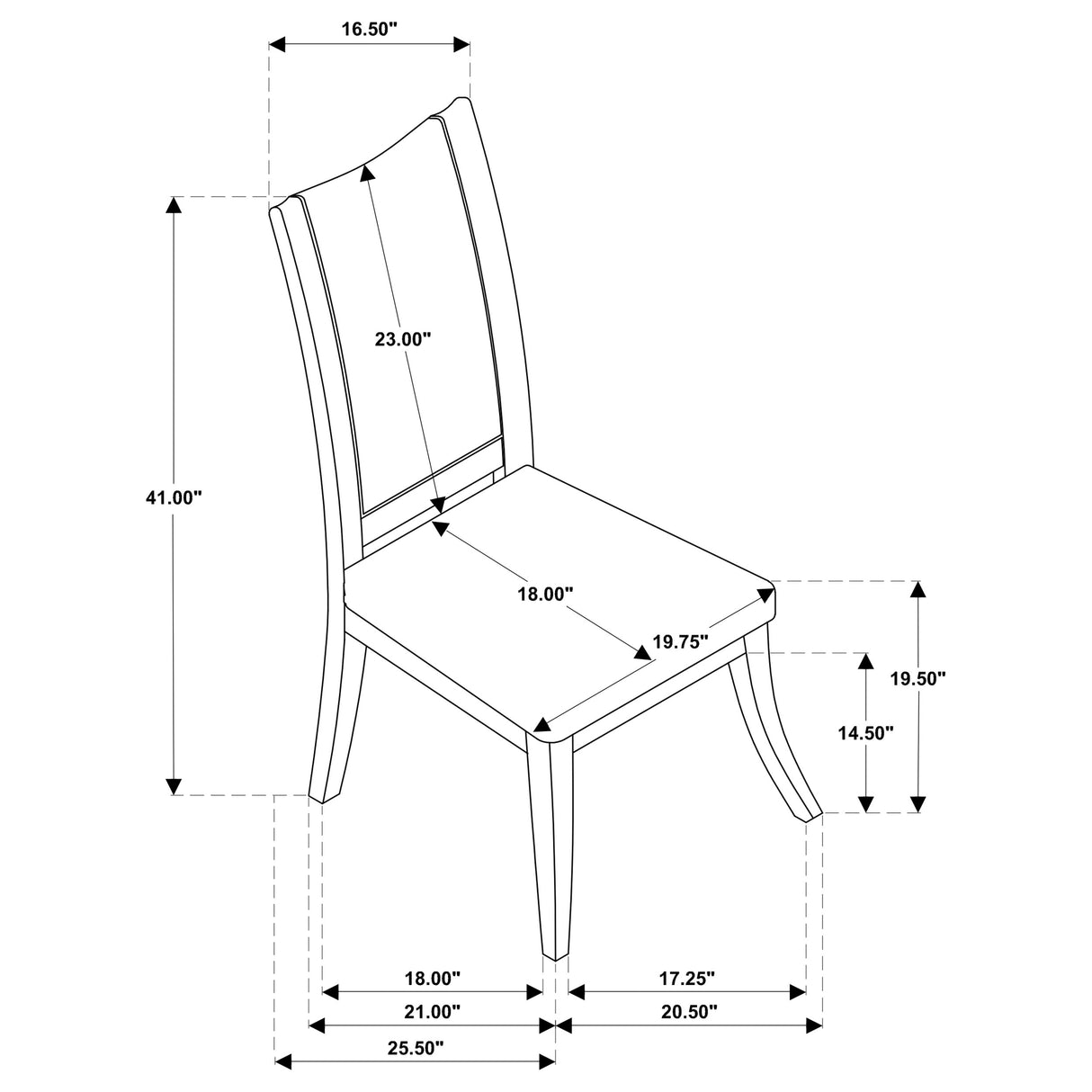 - Asiento de silla lateral: 19,75" de ancho x 18,50" de profundidad x 20,00" de alto