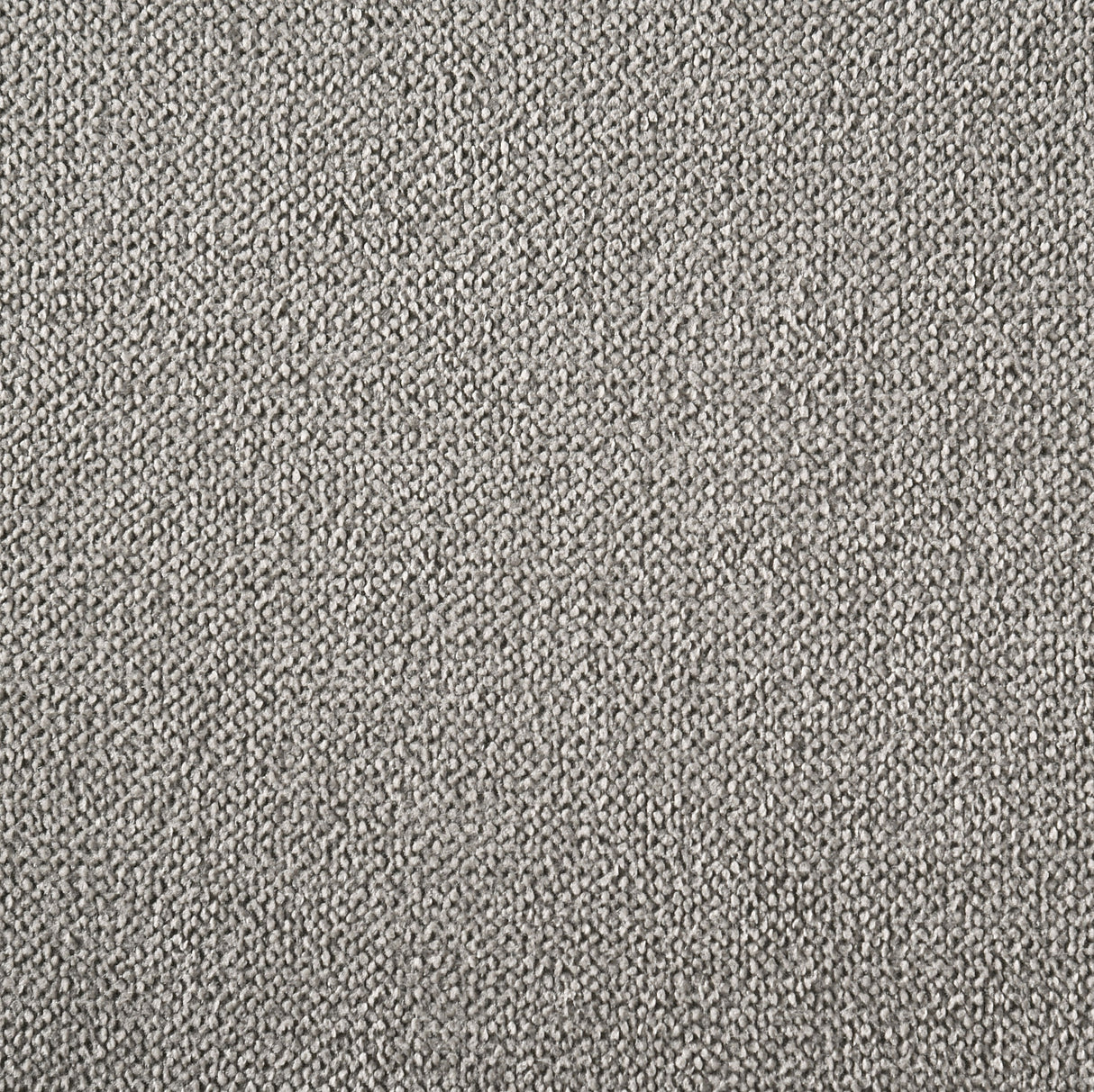 - La tapicería de tela gris suave agrega un borde ribeteado alrededor del panel insertado trasero y sobre los cojines acolchados del asiento.