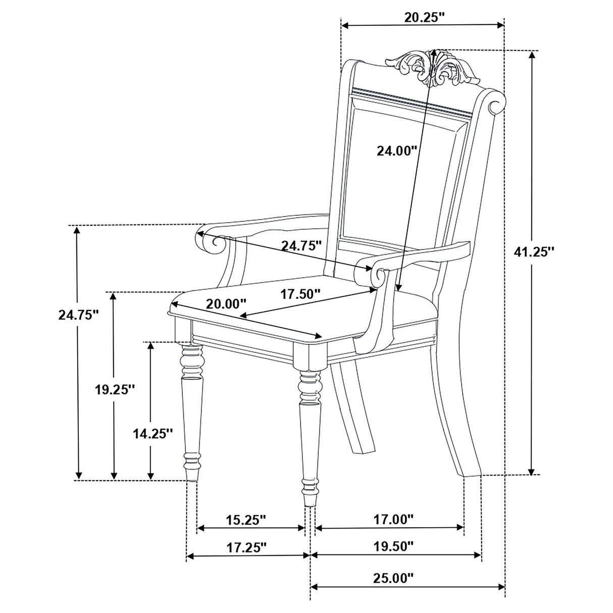 - Los elementos torneados adornan las patas delanteras de la silla, añadiendo estilo a los elegantes y esbeltos apoyabrazos.