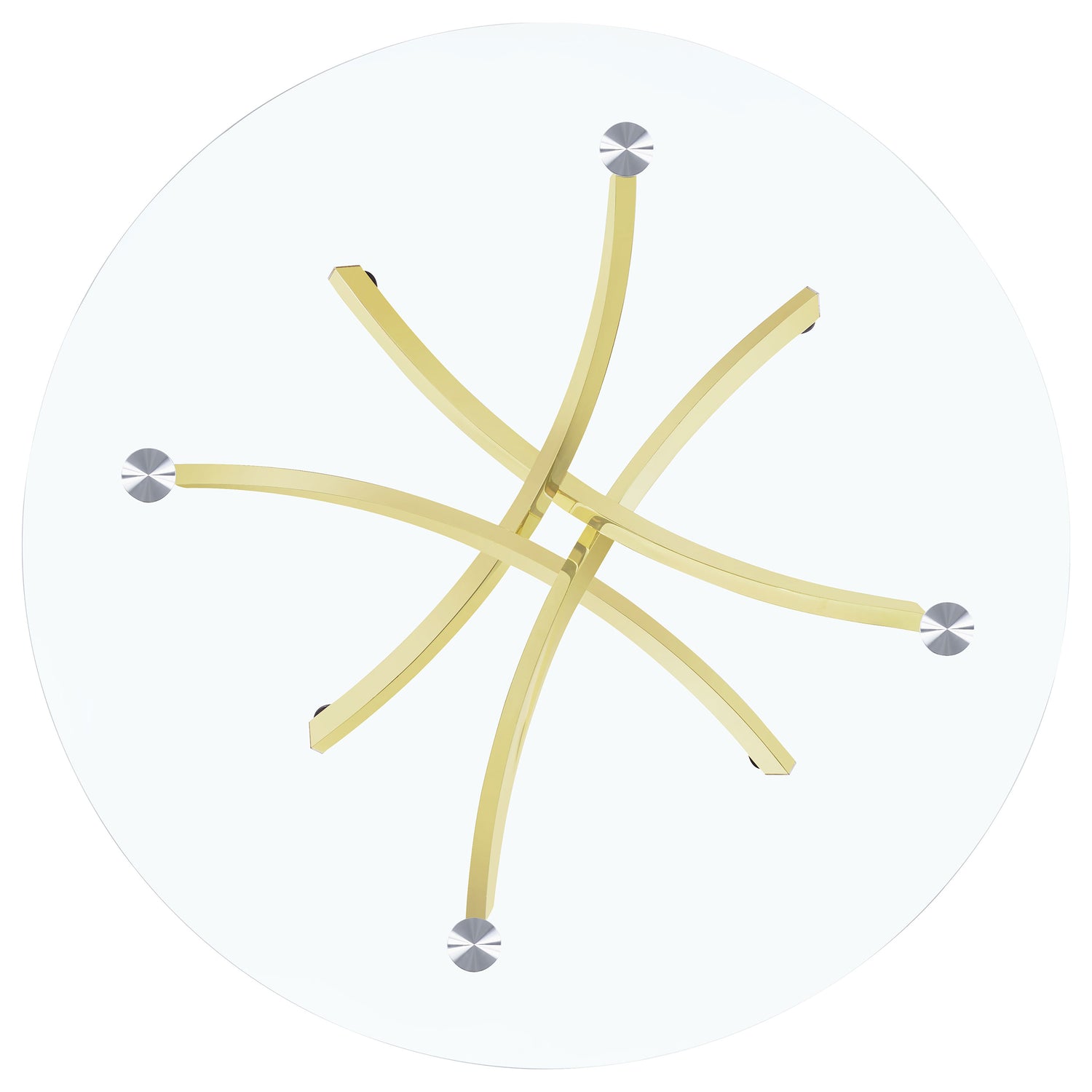 Manténgase a la vanguardia del glamour contemporáneo. Esta mesa de comedor se inspira en el cristal transparente y la embellece un radiante marco con acabado en latón. Con un diseño ingenioso, su base presenta atractivas tiras contorneadas. Un tablero redondo de cristal le aporta sofisticación y elegancia. Esta magnífica mesa cuenta con discos que protegen el suelo bajo cada pata.