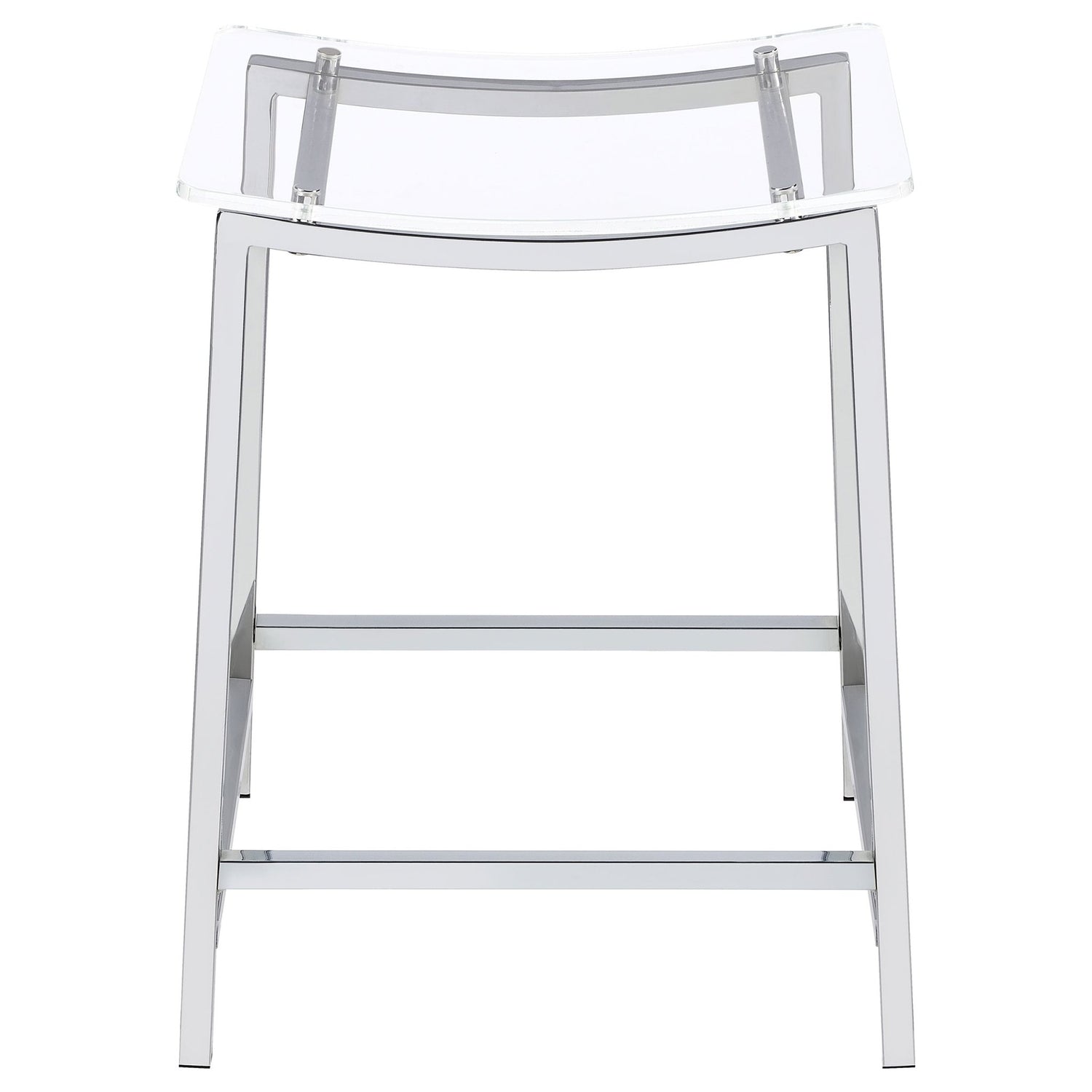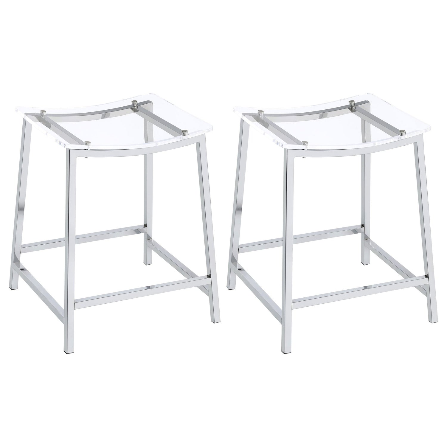 Taburetes de bar Jovani de acrílico, sin respaldo, altura de mostrador, transparentes y cromados (juego de 2) | Coaster está agotado y se enviará tan pronto como vuelva a estar disponible.