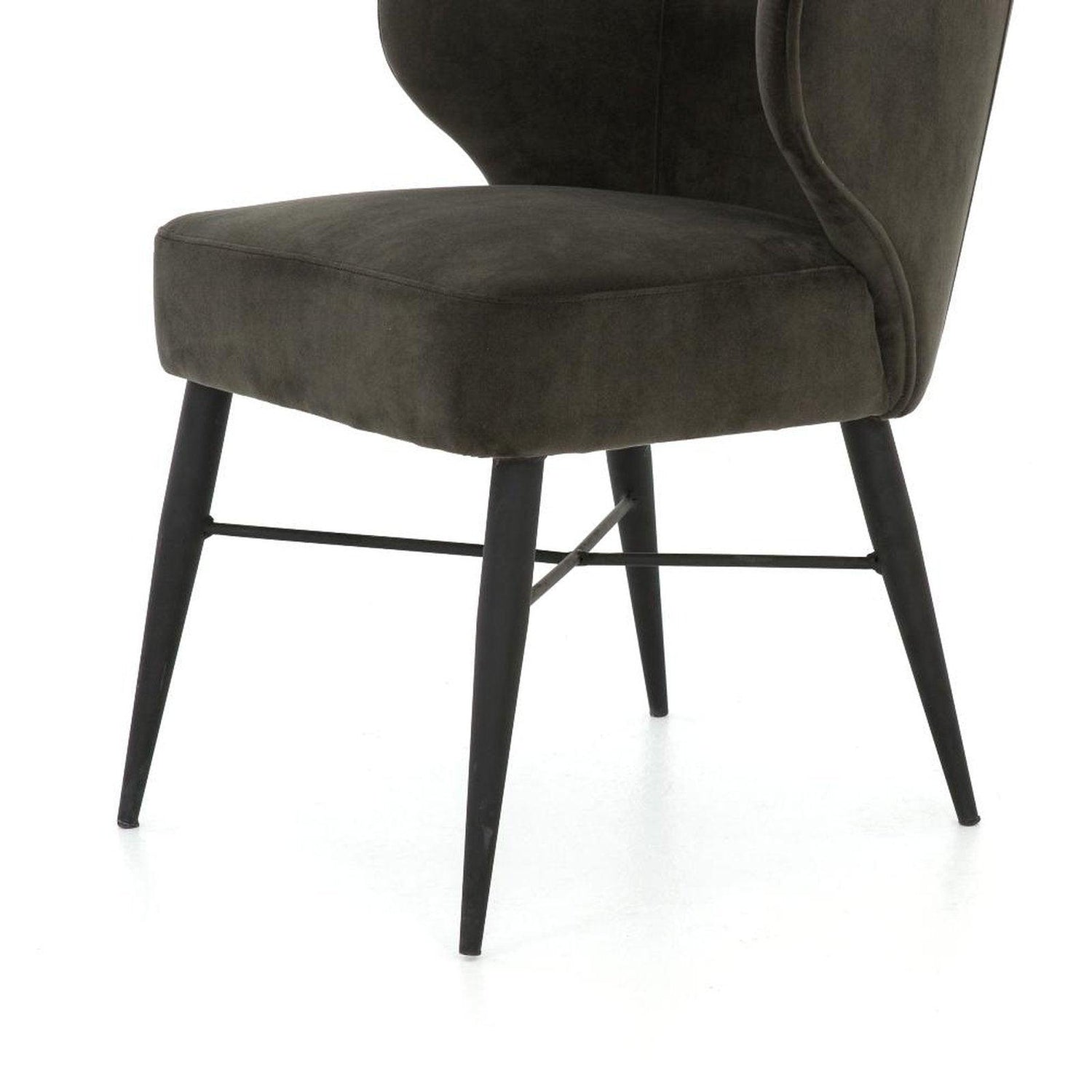 - Las patas angulares de hierro tienen forma cónica y ofrecen un asiento cómodo en un atractivo tono ahumado.