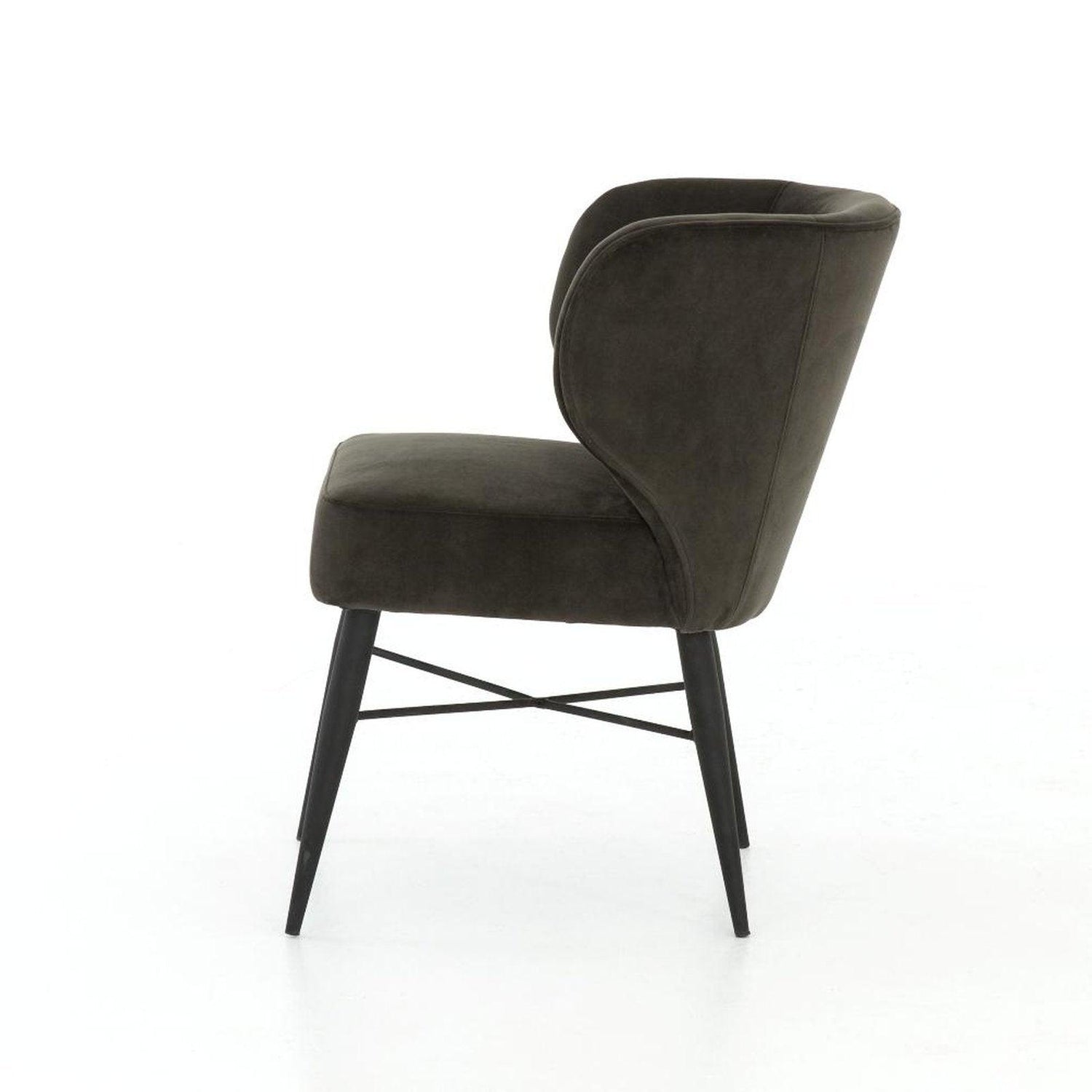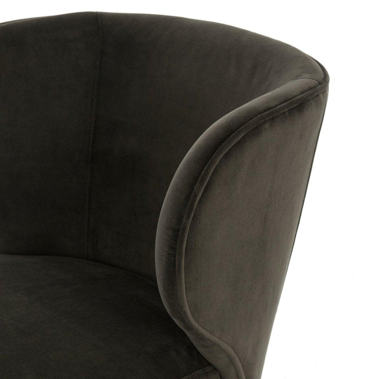 - Un respaldo bajo y curvado reinventa el clásico respaldo tipo orejero.