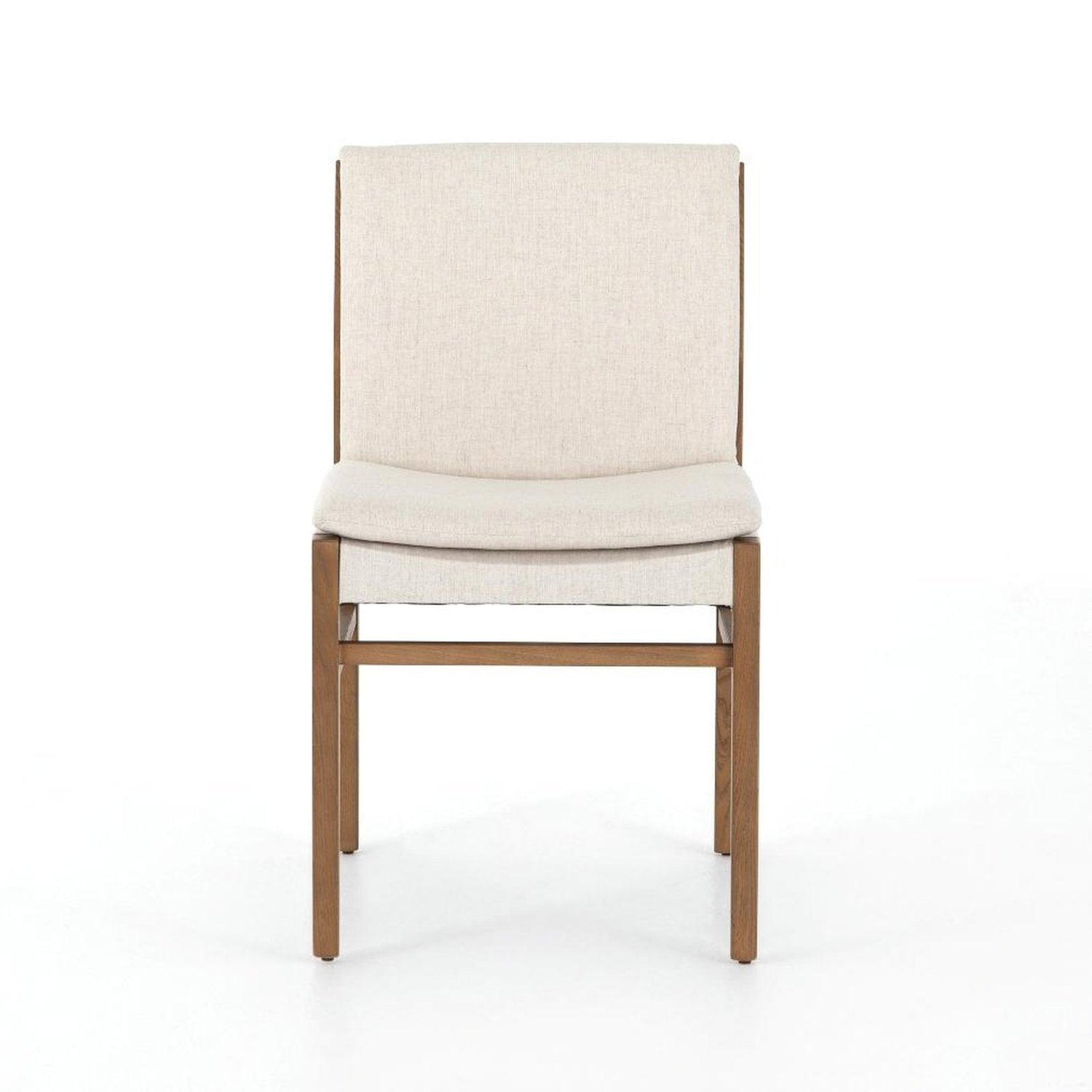 - Moderno y de transición, con marcos de madera de ortiga con acabado marrón, asientos tapizados de alto rendimiento sin brazos en un hermoso tono blanco roto informal.
