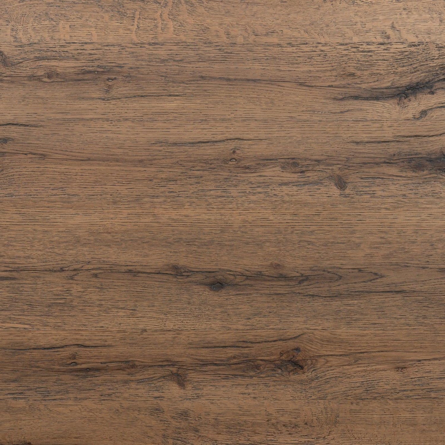 - Terminada en un marrón rústico intenso, una mesa de comedor doble estilo altar de chapa de roble gruesa seleccionada a mano presenta nudos y vetas visibles, lo que le da un aspecto bellamente recuperado a las cenas diarias.