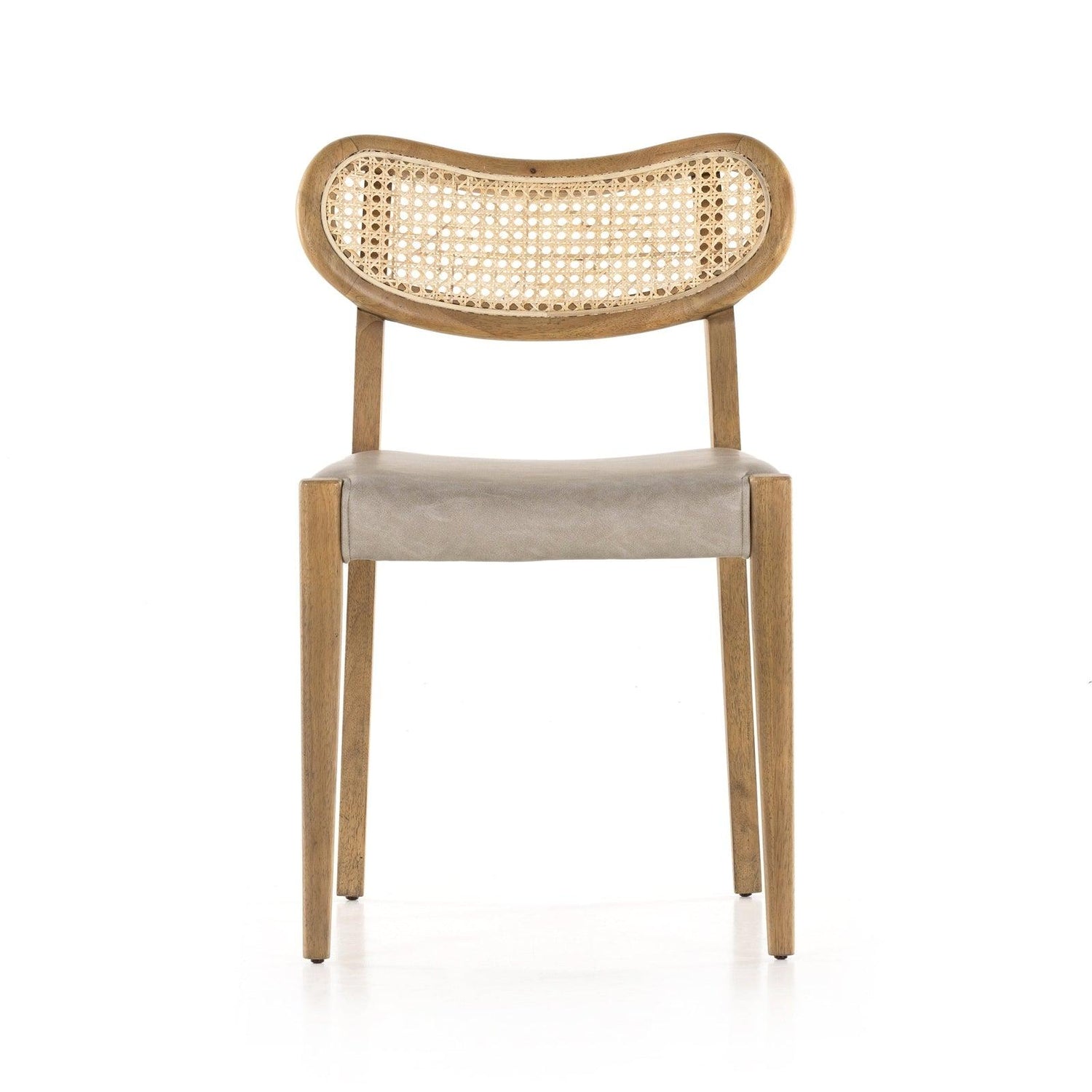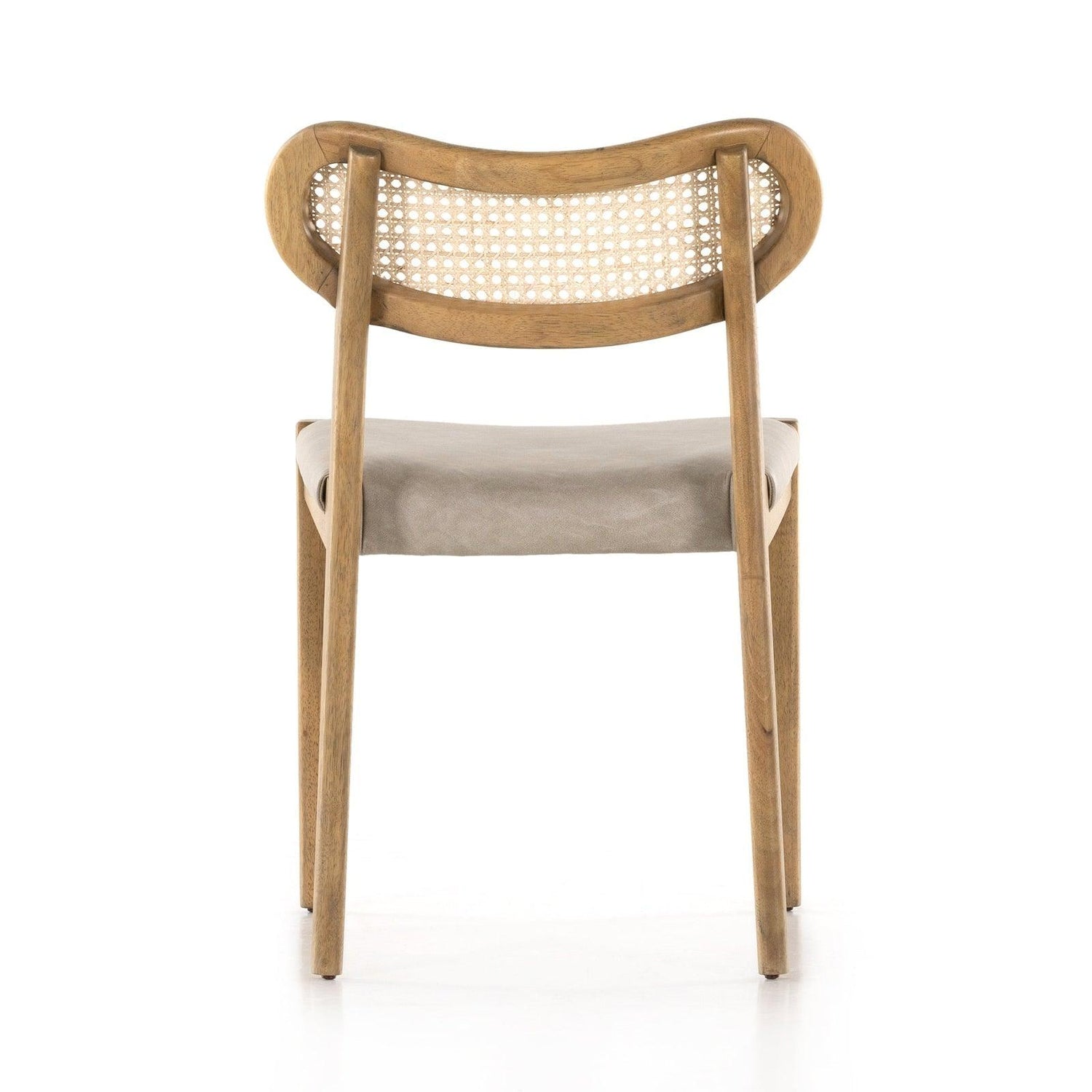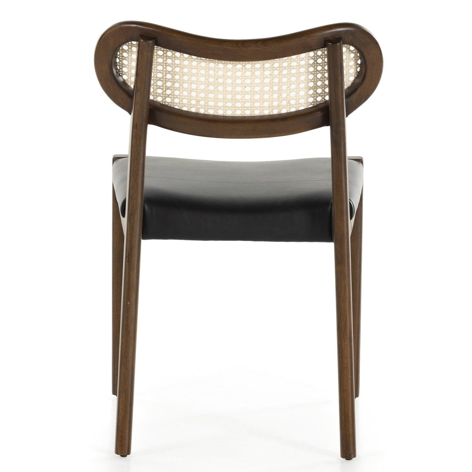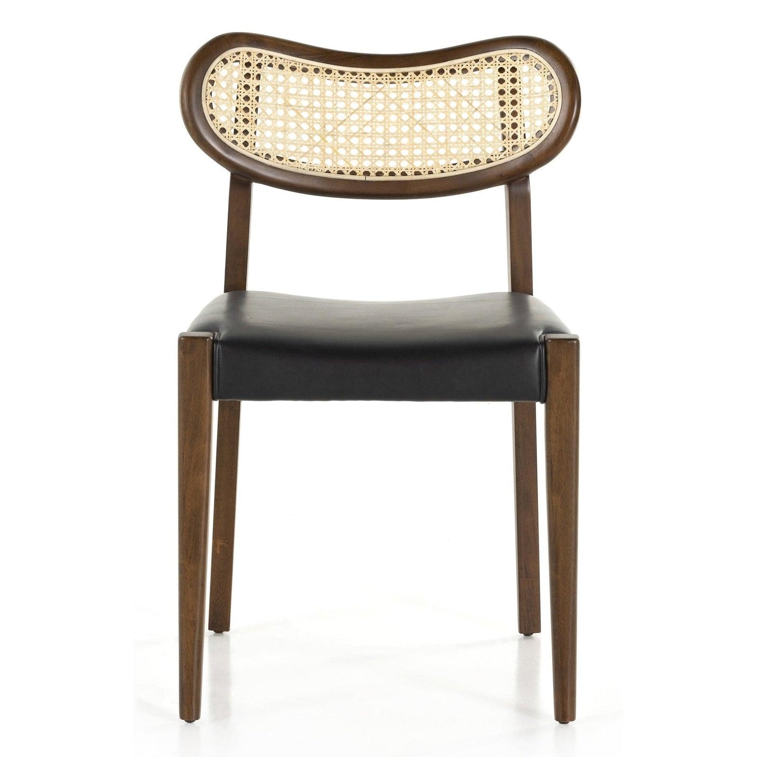 - La madera maciza de para bruñido forma un marco aerodinámico para un asiento de cuero sintético y un respaldo de caña con incrustaciones en una forma de riñón actualizada.