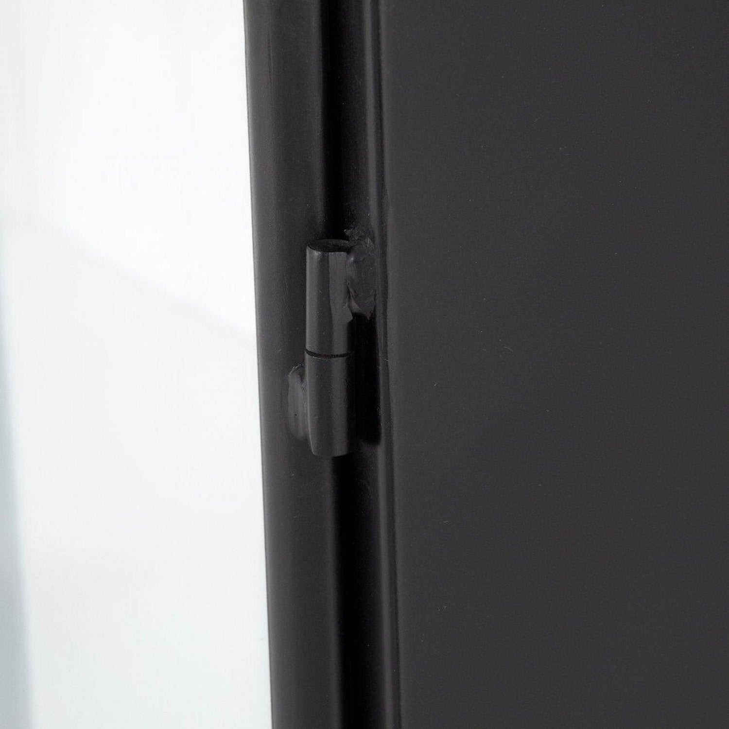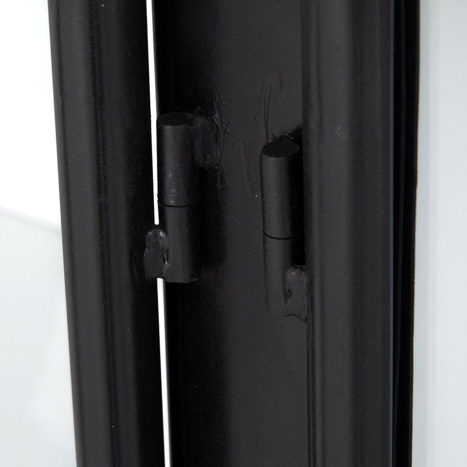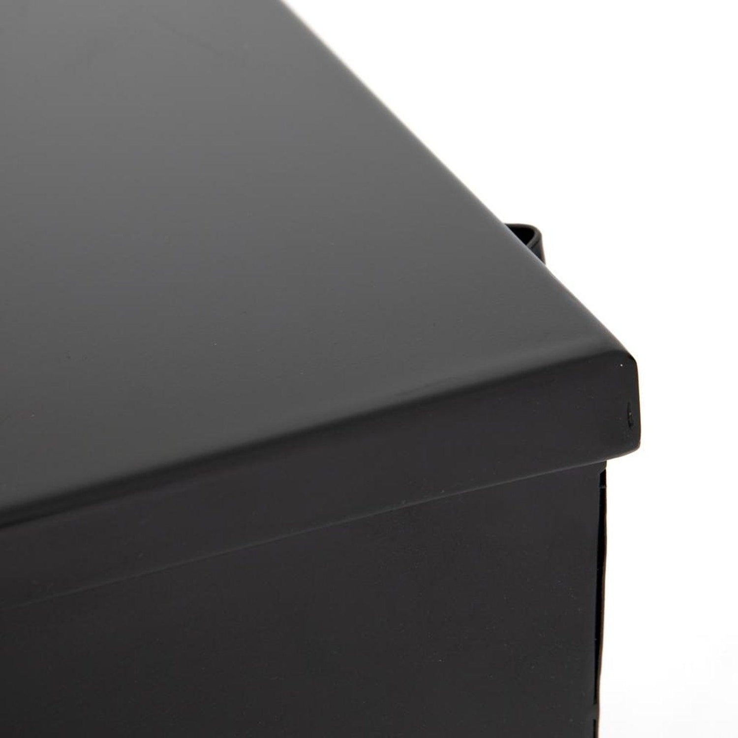 - Un marco de hierro negro desgastado contrasta con un interior blanco limpio para darle una versión actualizada de la consola multimedia tradicional.