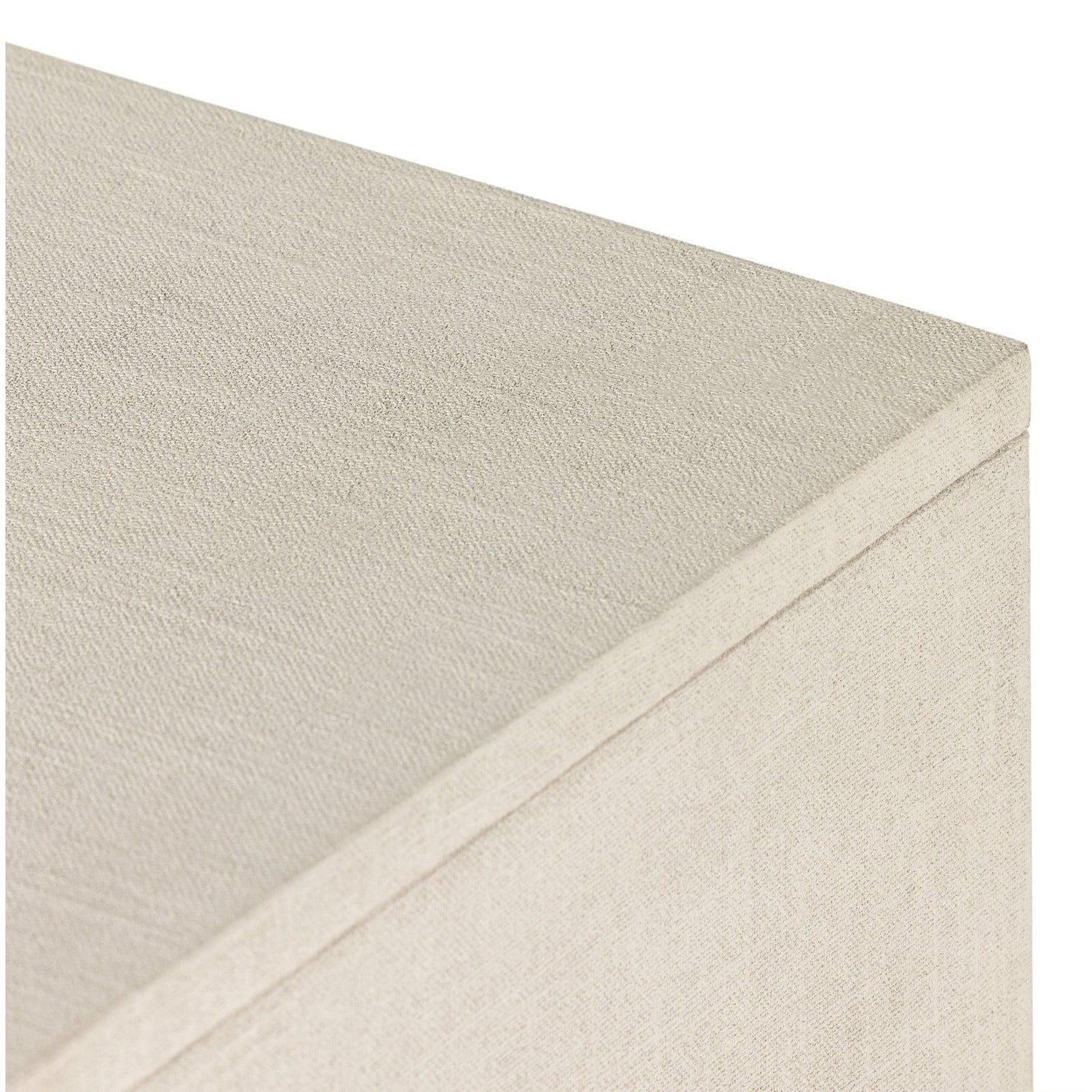 • Fabricado en lino pintado de un color marfil claro, las patas arqueadas suavizan una forma limpia y moderna.