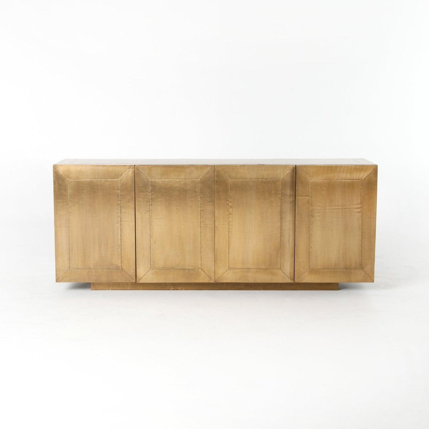 - El sutil glamour del latón envejecido cubre este aparador de líneas limpias.