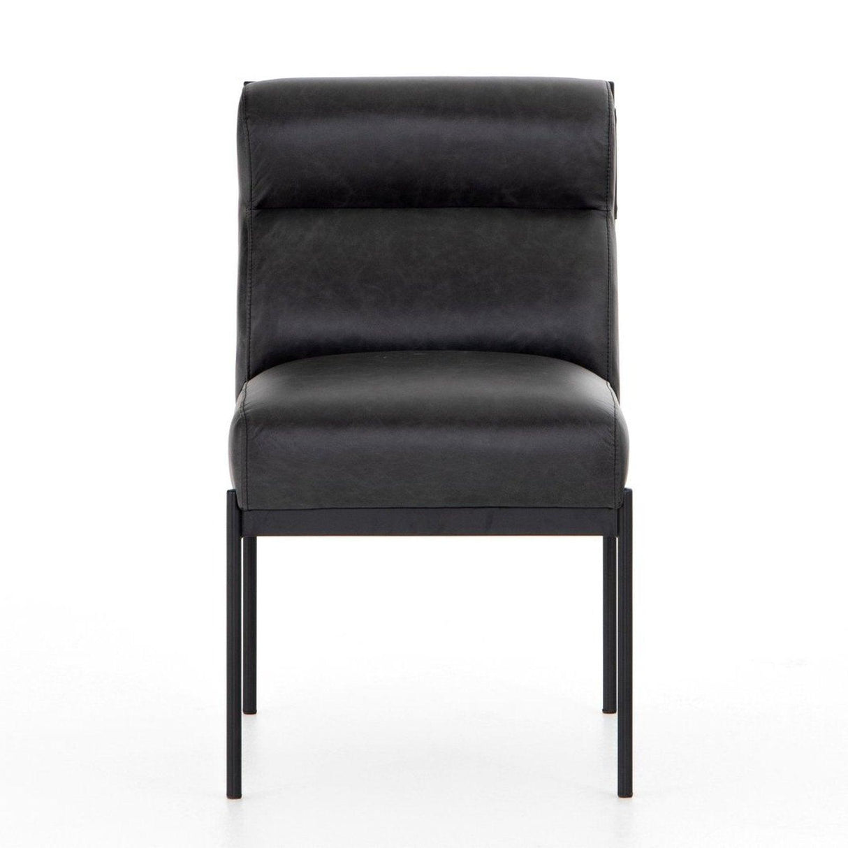 - El cuero de grano superior mantecoso exclusivo de Four Hands presenta canales anchos para una comodidad generosa, con un marco delgado tipo jaula de hierro con acabado negro para una apariencia monocromática fresca y sin esfuerzo.