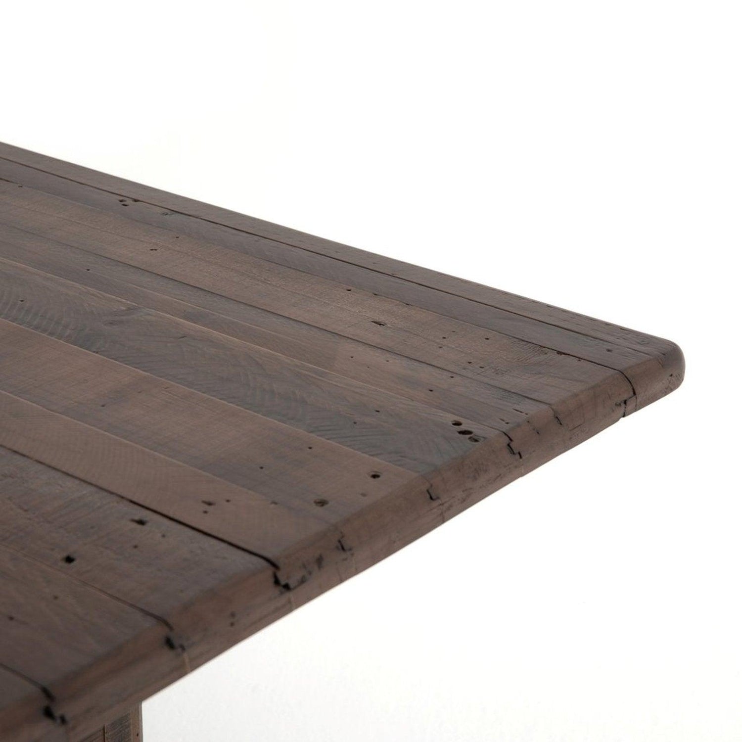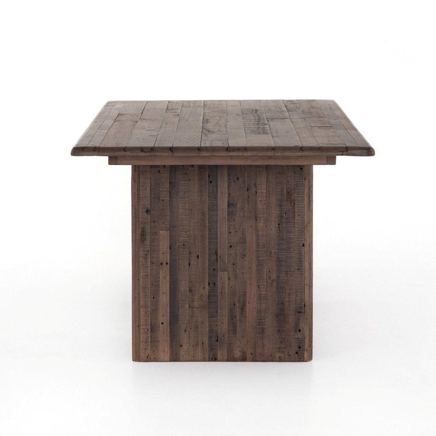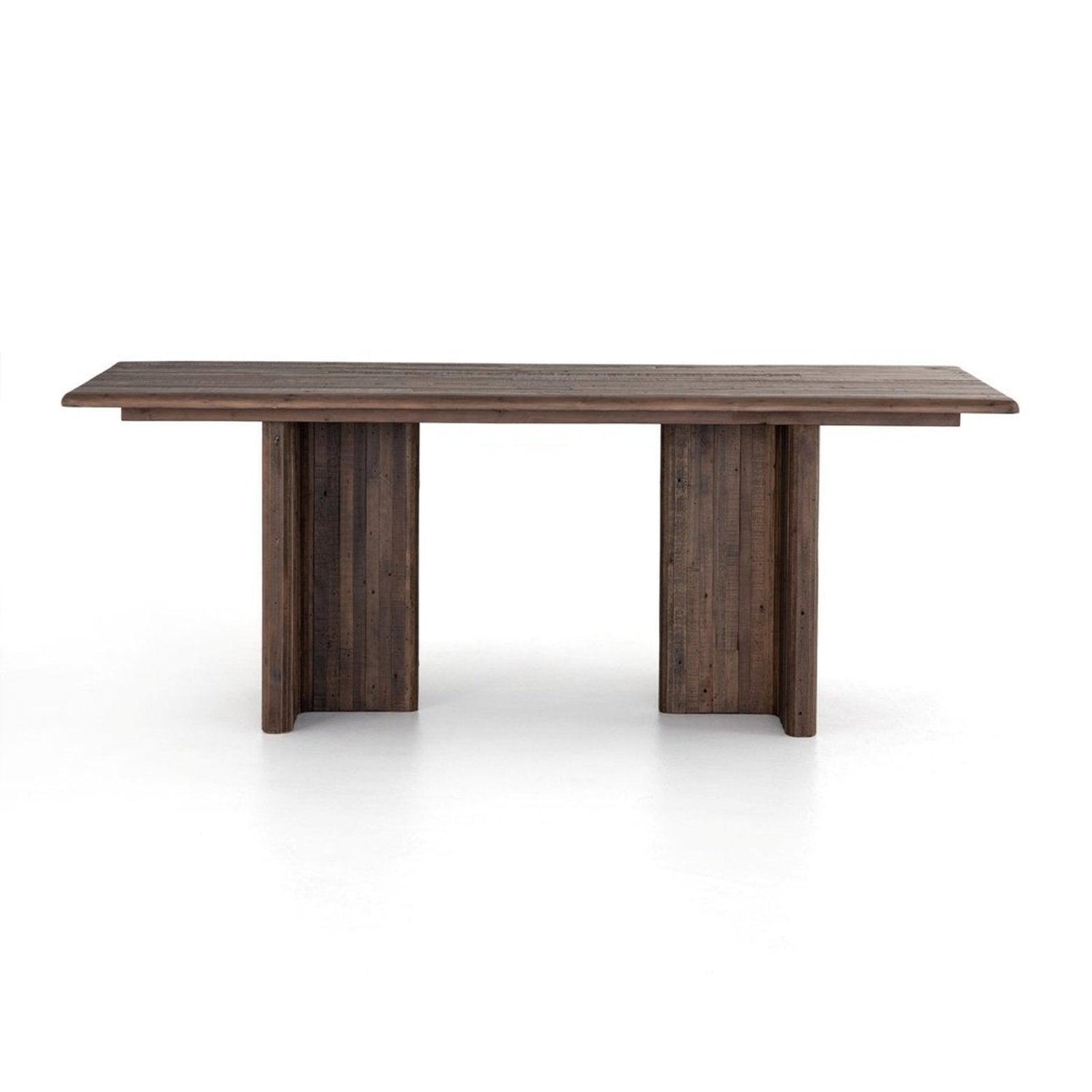 - Majestuosa y moderna, esta mesa de estilo altar está hecha de maderas sólidas recuperadas, para lograr un aspecto rústico rico en carácter natural.