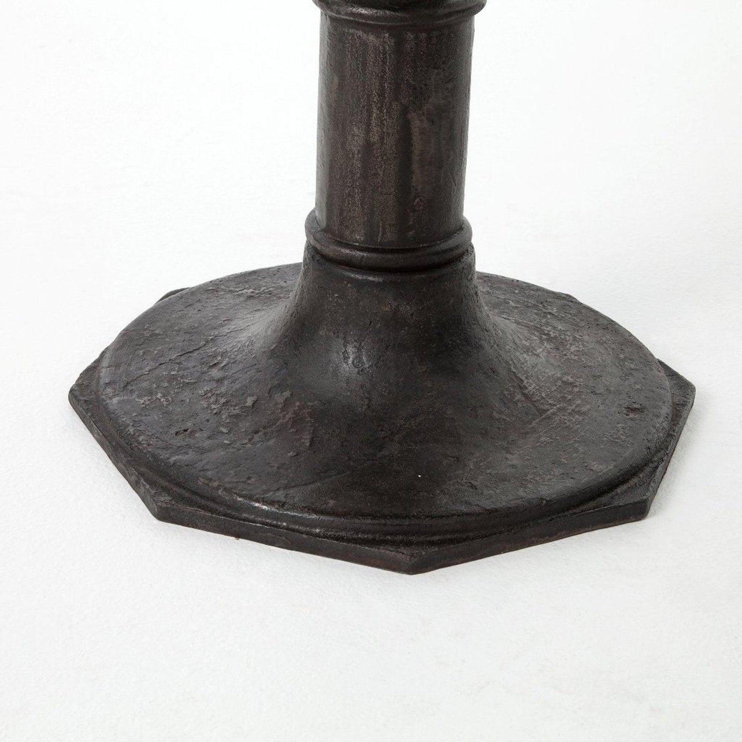 • Un pedestal de hierro fundido detallado de 8 lados sostiene una espectacular cubierta de mármol blanco con borde redondeado.
