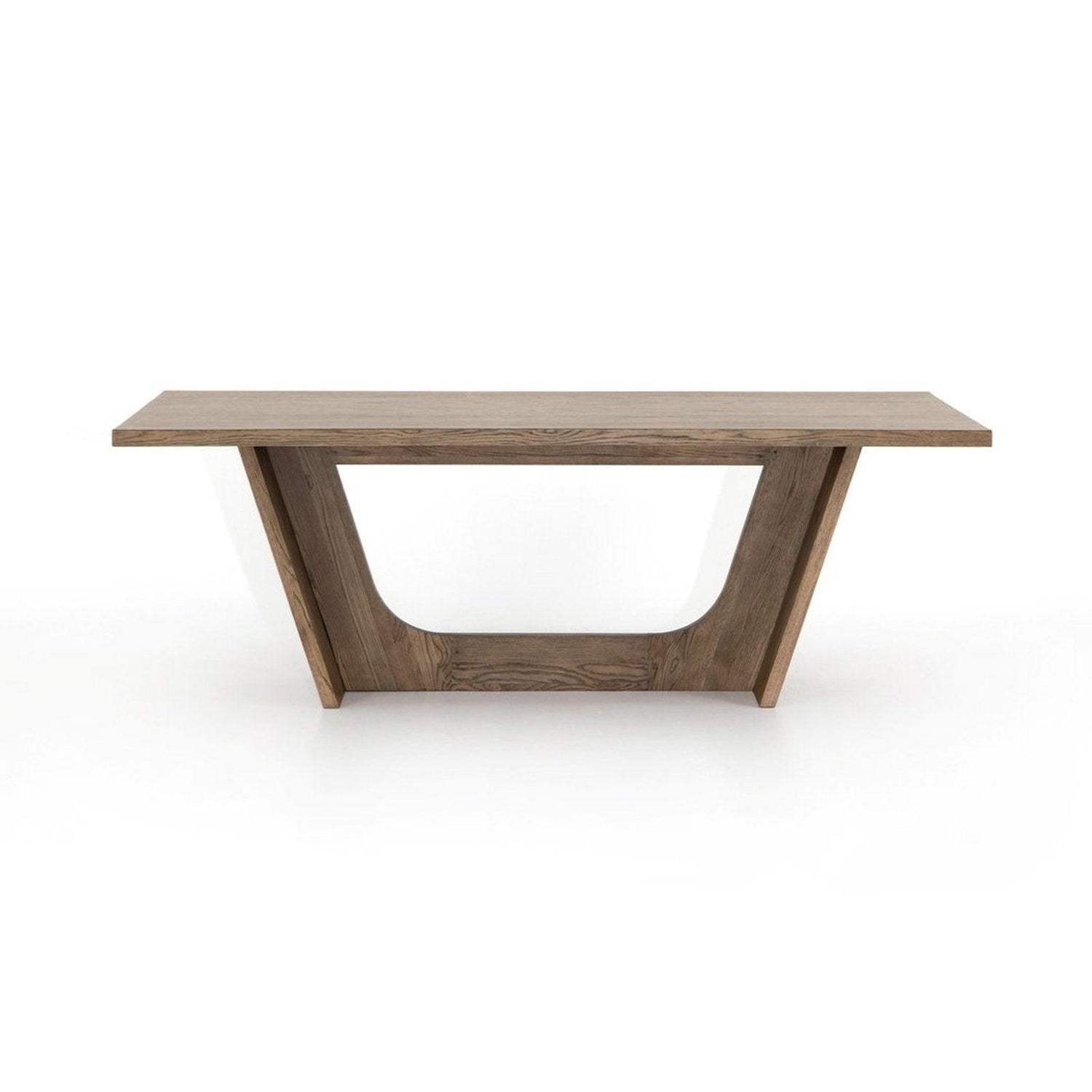 - Fabricado con gruesas chapas de roble, una combinación de vetas rectas y tipo catedral y un acabado gris ahumado aportan profundidad a la mesa del comedor.