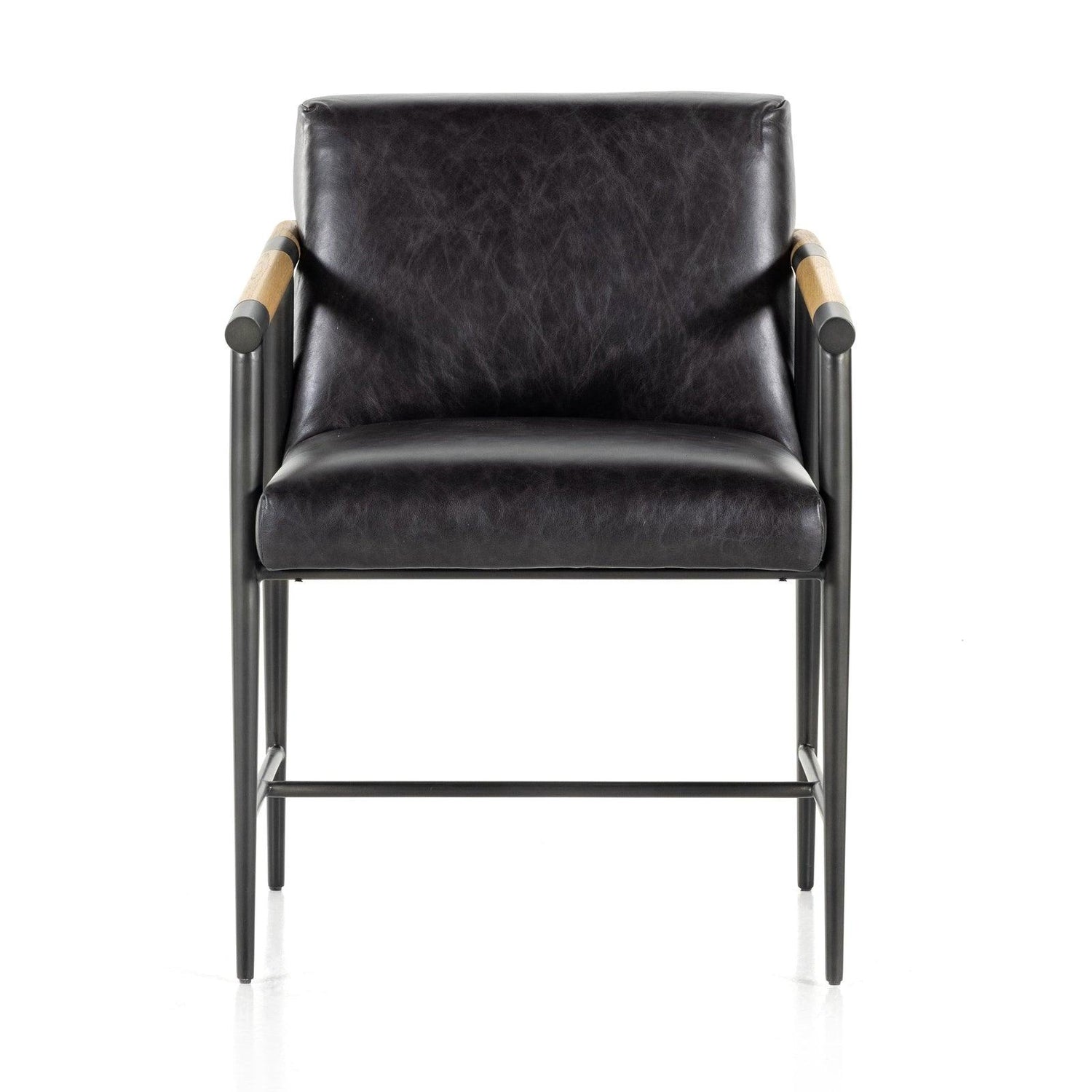- Asientos de cuero negro mantecoso de primera calidad exclusivos de Four Hands.