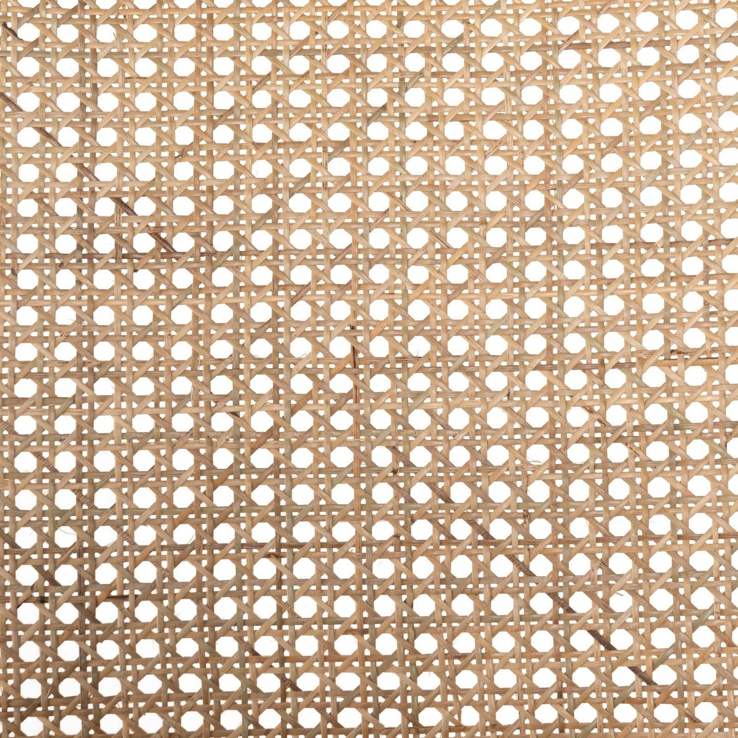 - La madera de haya maciza de color arena cuenta con un respaldo de caña natural para una textura adicional, mientras que un asiento de cuero con acabado color caramelo brinda comodidad total.