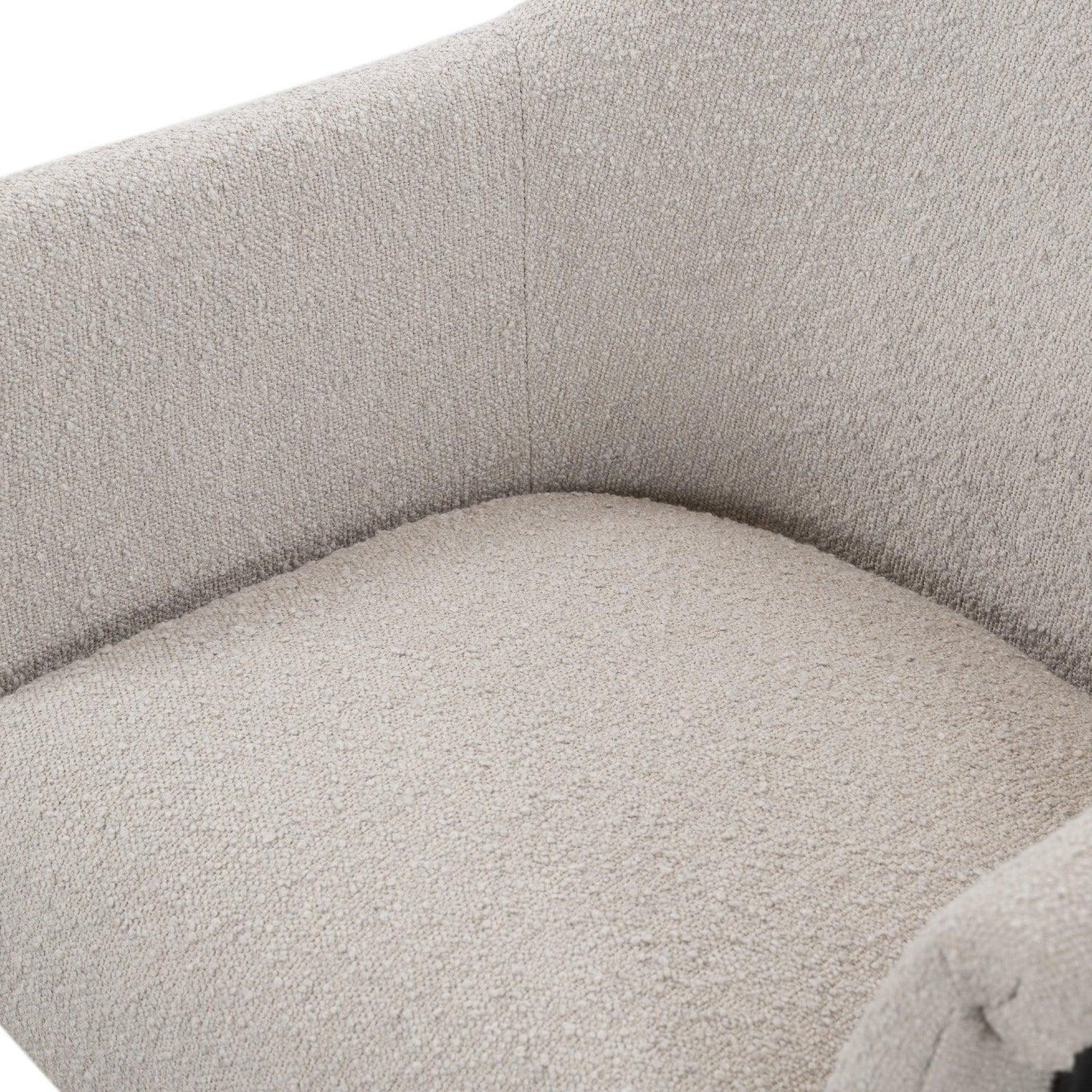- Con una silueta curvilínea y brazos enrollados clásicos, la tapicería de alto rendimiento brinda una sensibilidad moderna a los asientos decorativos de inspiración vintage, con una base de hierro aireada para un hermoso equilibrio de escala.