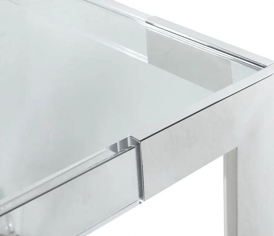 - Mesa de comedor de acero inoxidable y acrílico con acabado cromado intenso