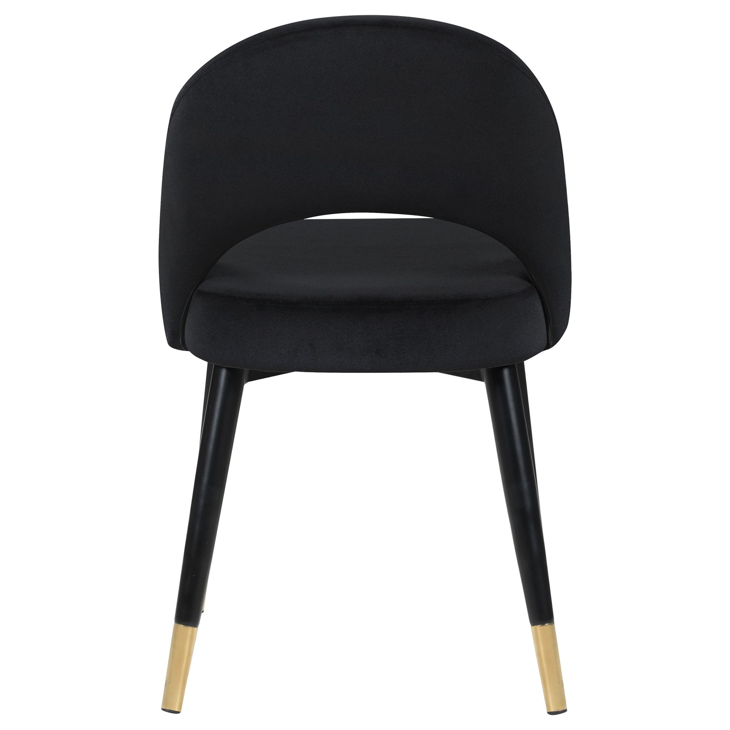 Este juego de dos sillas de comedor presenta un elegante asiento tipo cubo que le da un aspecto moderno de mediados de siglo con inspiración retro. Cada silla ofrece un asiento duradero y firme para cada comensal, tapizada en terciopelo que complementa diversas paletas de colores y le da un toque llamativo. Las patas acampanadas y cónicas realzan el estilo vintage. Las patas con acabado dorado le dan un toque dramático y majestuoso al estilo Hollywood. Combínalas con una espaciosa mesa de comedor rectangular para una cena formal o un cóctel.