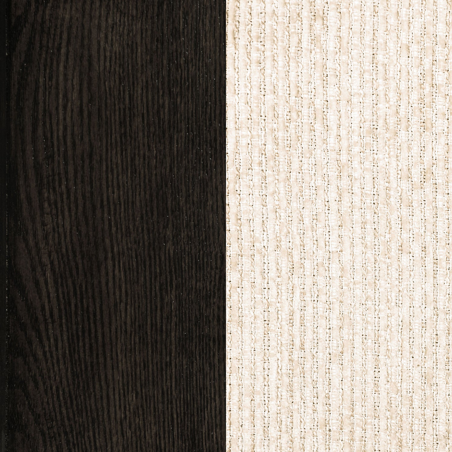 - Las sillas tienen una estructura de asiento tapizada en tela de chenilla en tono crema.