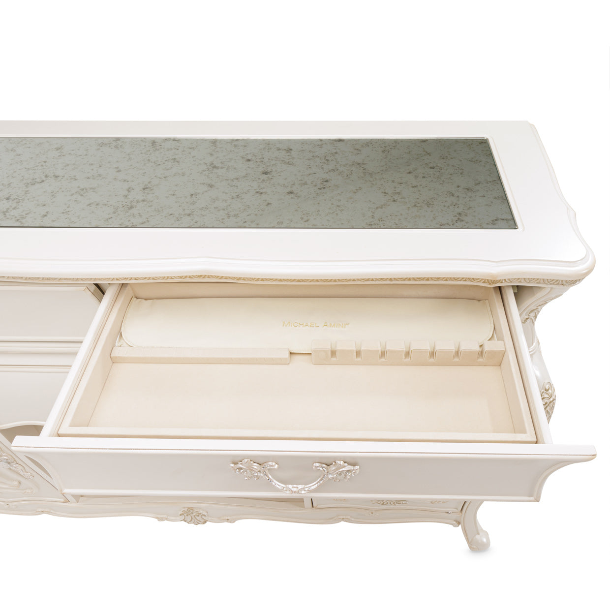 Aparador Lavelle con botellero y espejo – Classic Pearl de Michael Amini (54007-113)