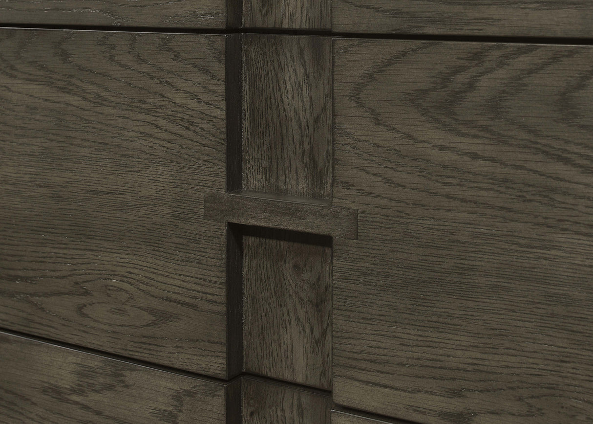 - El elegante acabado gris oscuro irradia elegancia moderna, mientras que los cajones superiores revestidos de fieltro marrón añaden un toque lujoso.