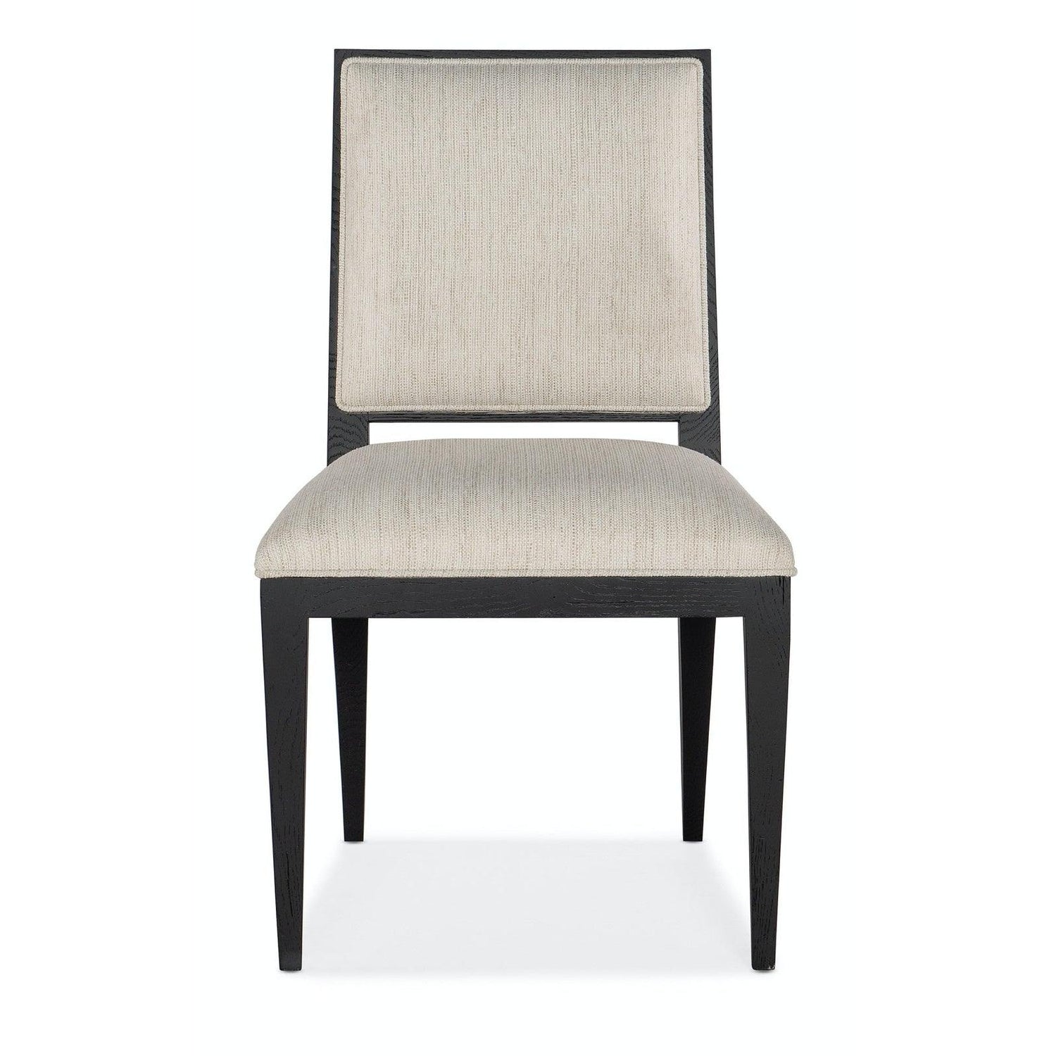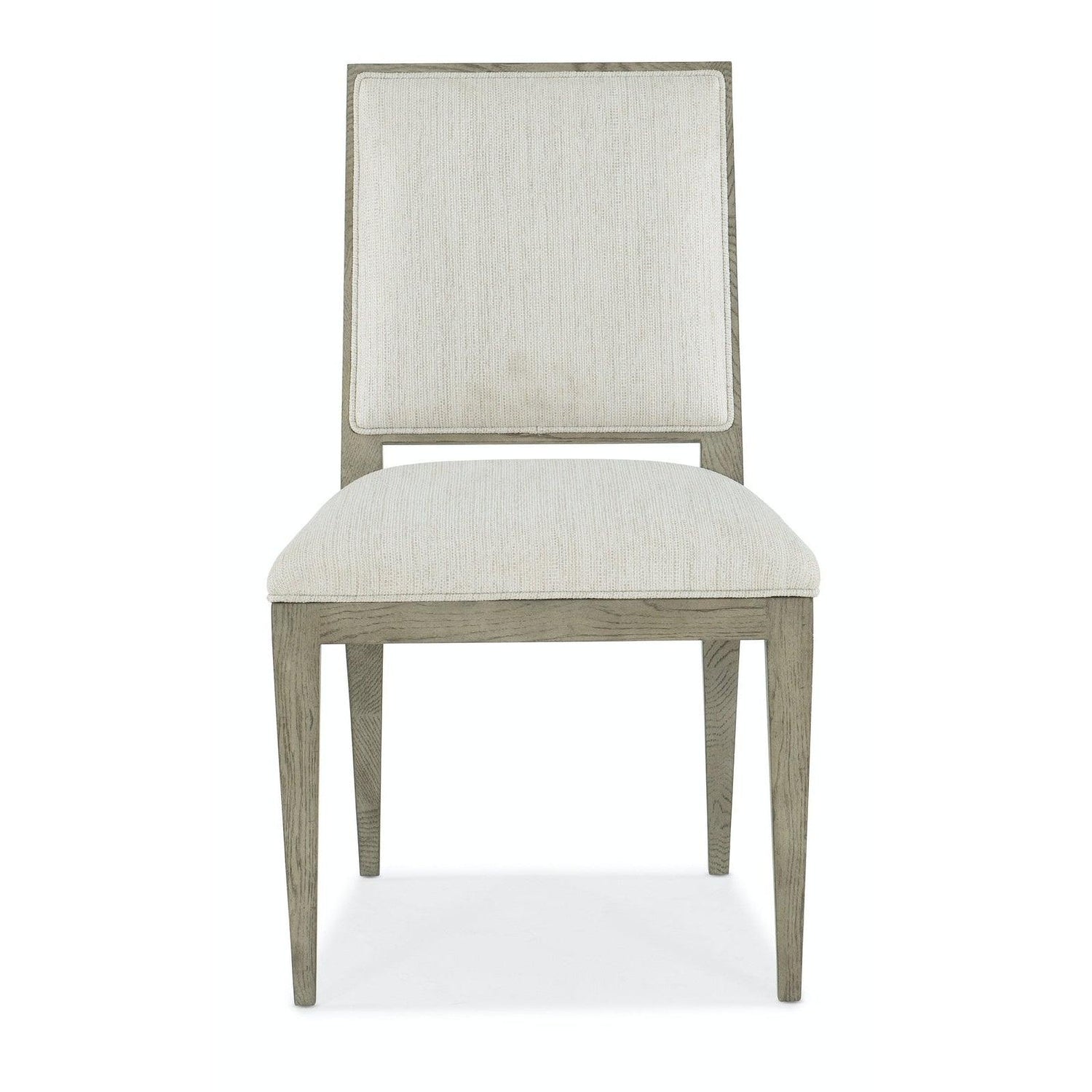 - Diseñada a medida y atemporal, la silla lateral Linn Cove tiene un cómodo asiento y respaldo tapizados en tela de rendimiento neutro Remington Porcelain con ribete de ribete.