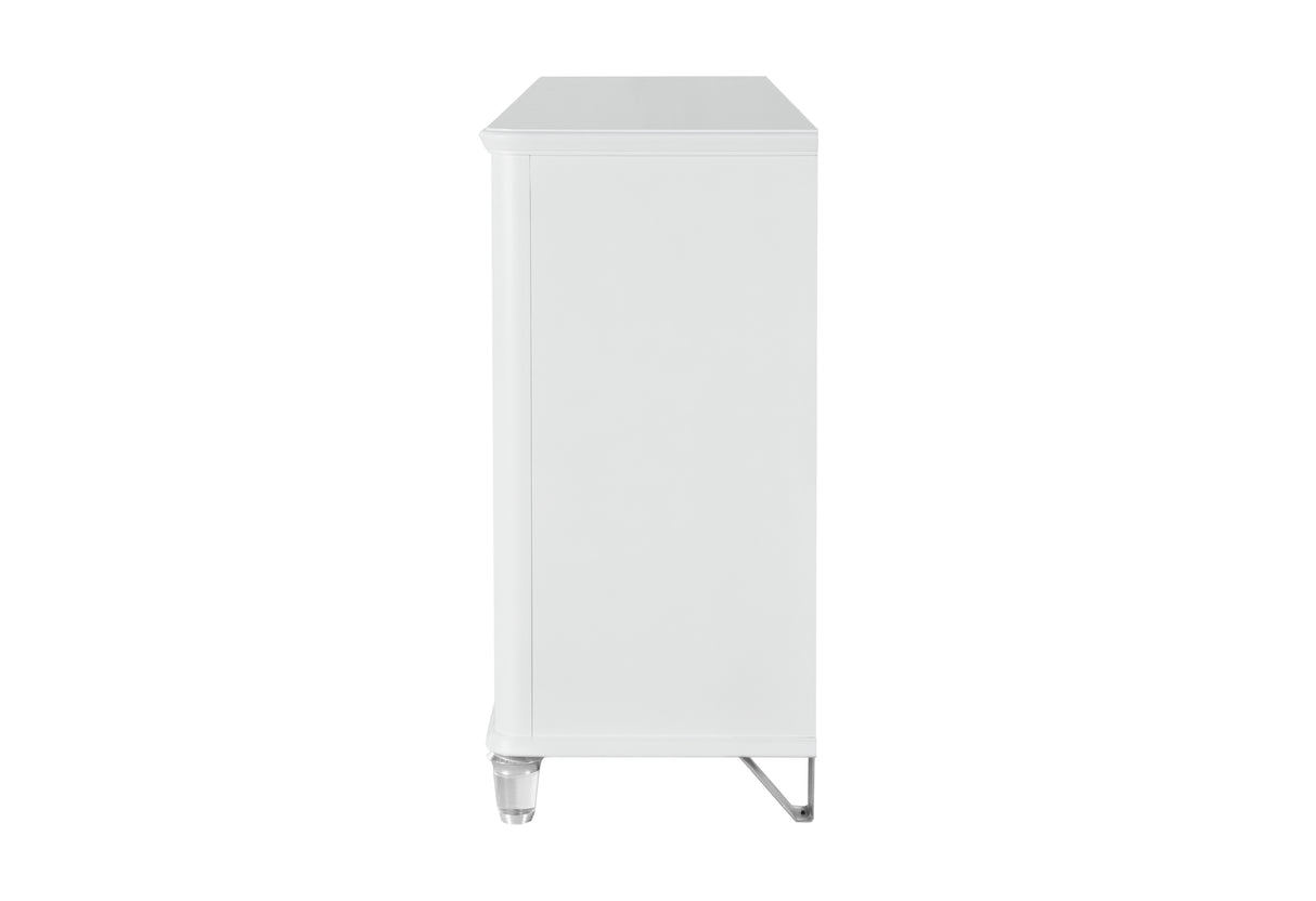 La cómoda Apollo combina funcionalidad y estilo, con cajones con frentes texturizados y patas de acrílico. Su diseño elegante y amplio espacio de almacenamiento la convierten en una adición elegante y práctica a su espacio.