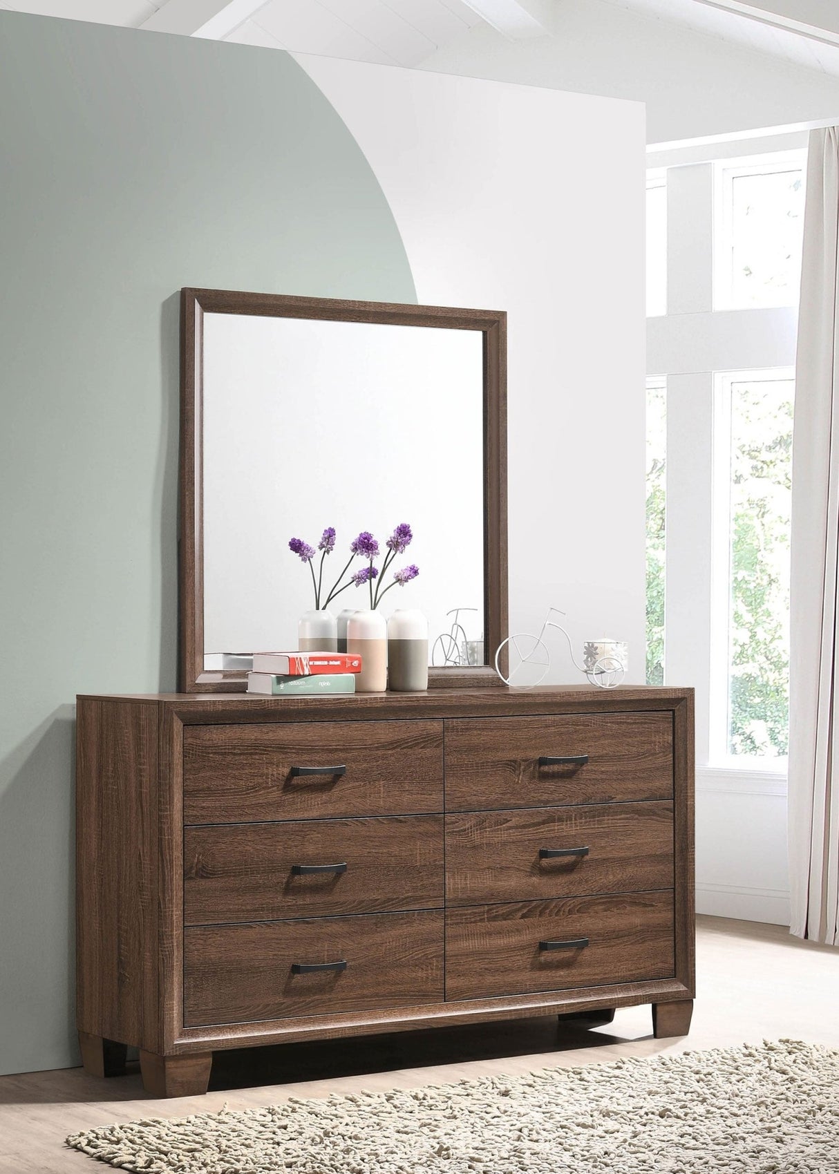 Cómoda Brandon de 6 cajones con espejo, marrón cálido medio | Coaster