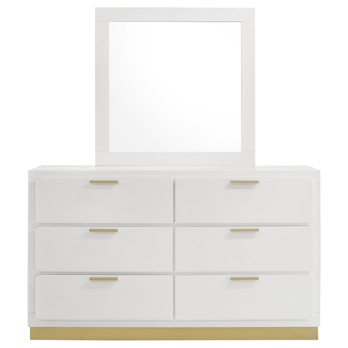 Cómoda de dormitorio Caraway de 6 cajones con espejo, color blanco | Coaster está agotado y se enviará tan pronto como vuelva a estar disponible.