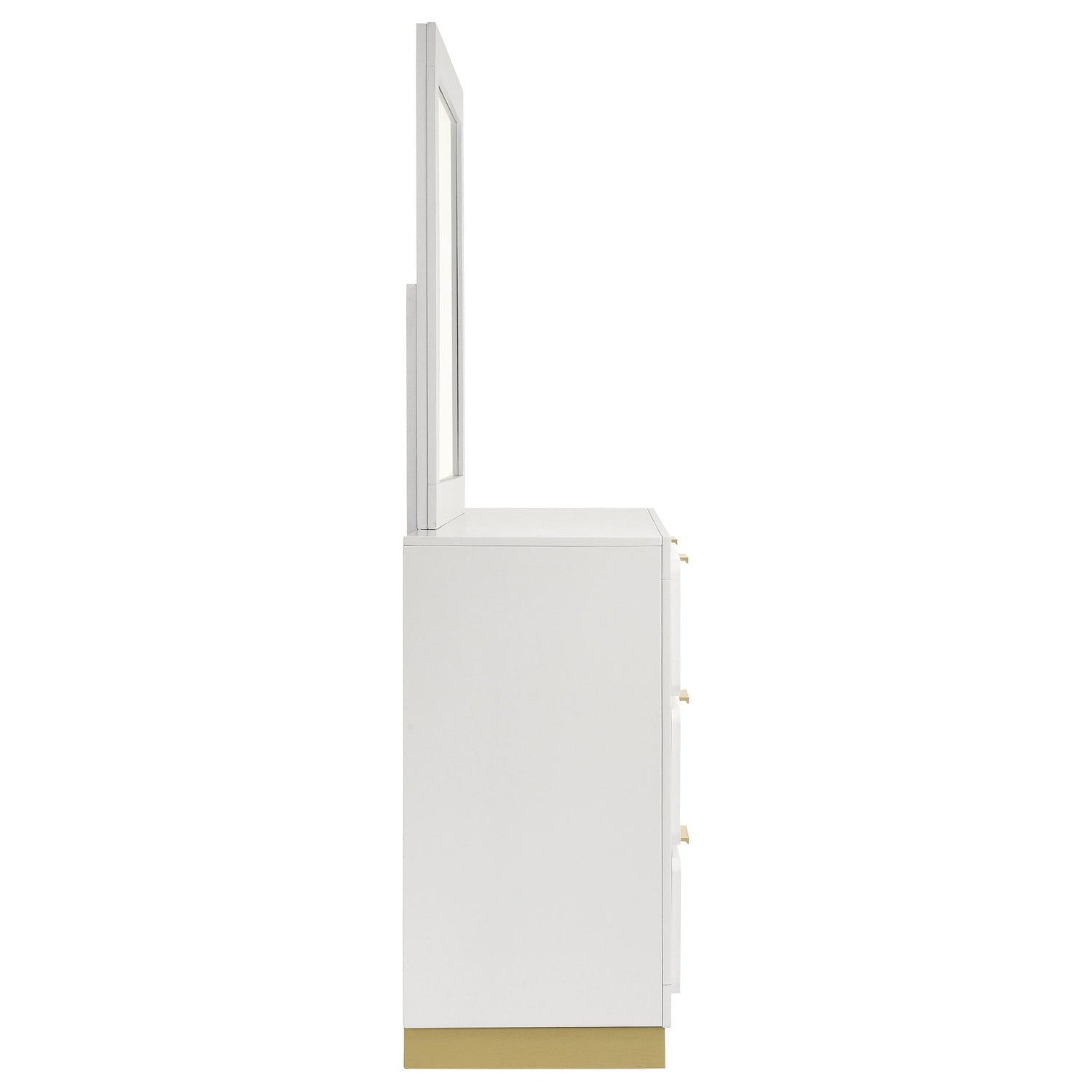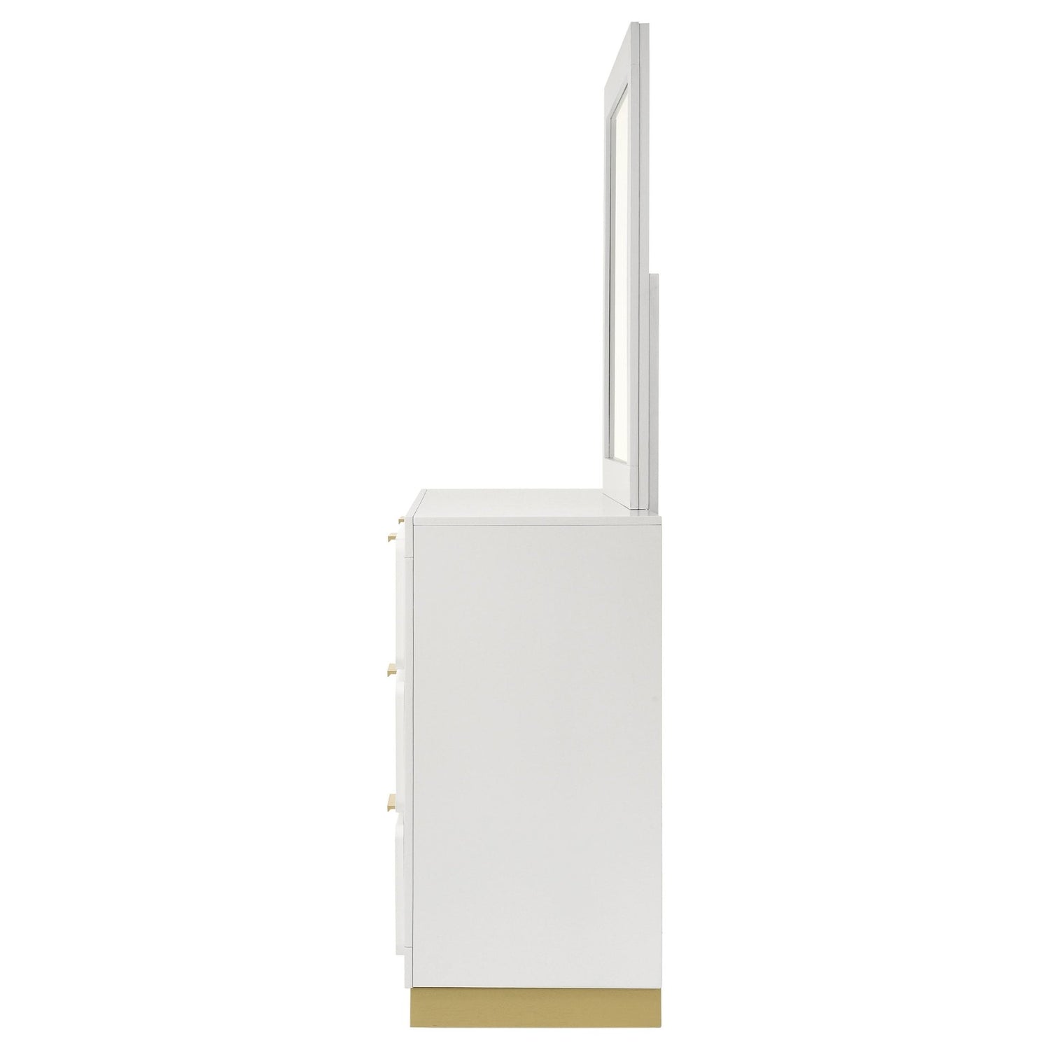 Cómoda de dormitorio Caraway de 6 cajones con espejo, color blanco | Coaster