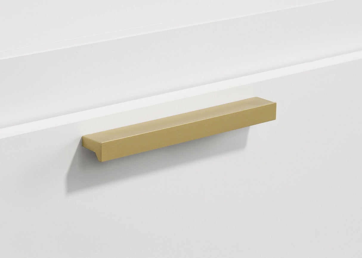 - Líneas limpias, elegancia elegante con tiradores de cajón rectos y base a juego.