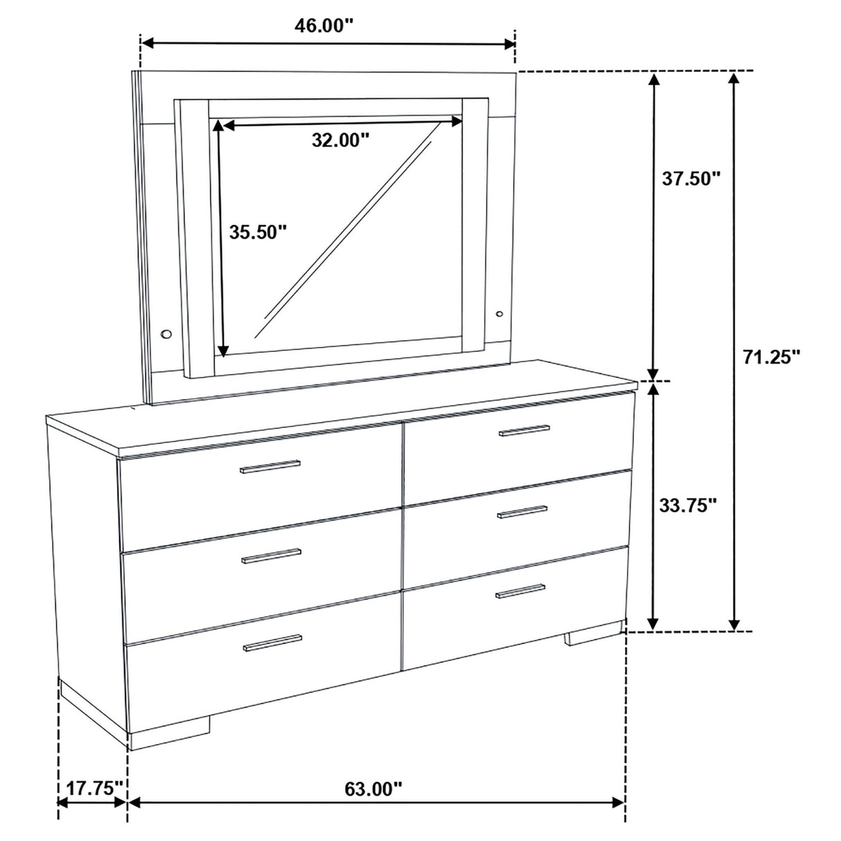 Cómoda Felicity de 6 cajones con espejo LED, blanco brillante | Coaster