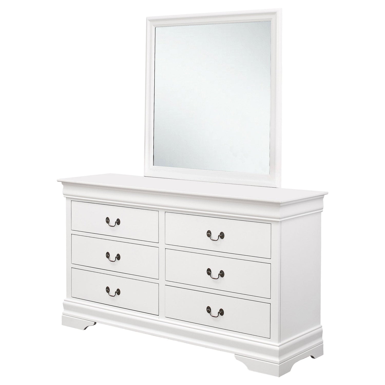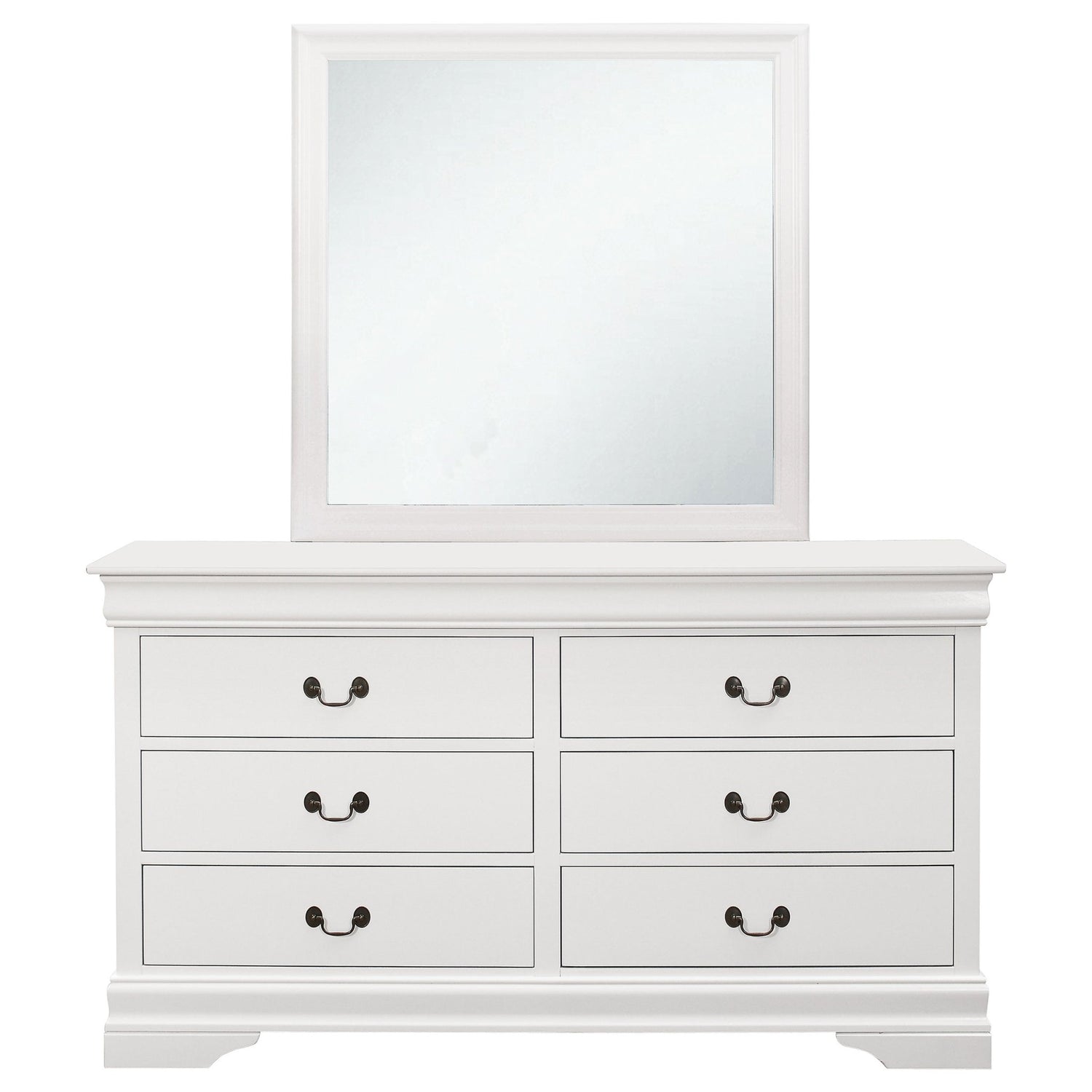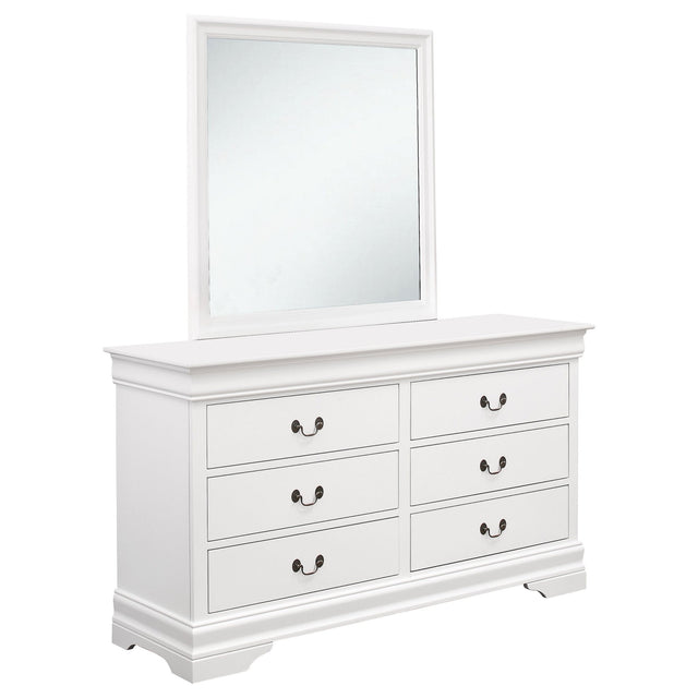 Cómoda Louis Philippe de 6 cajones con espejo, color blanco | Coaster