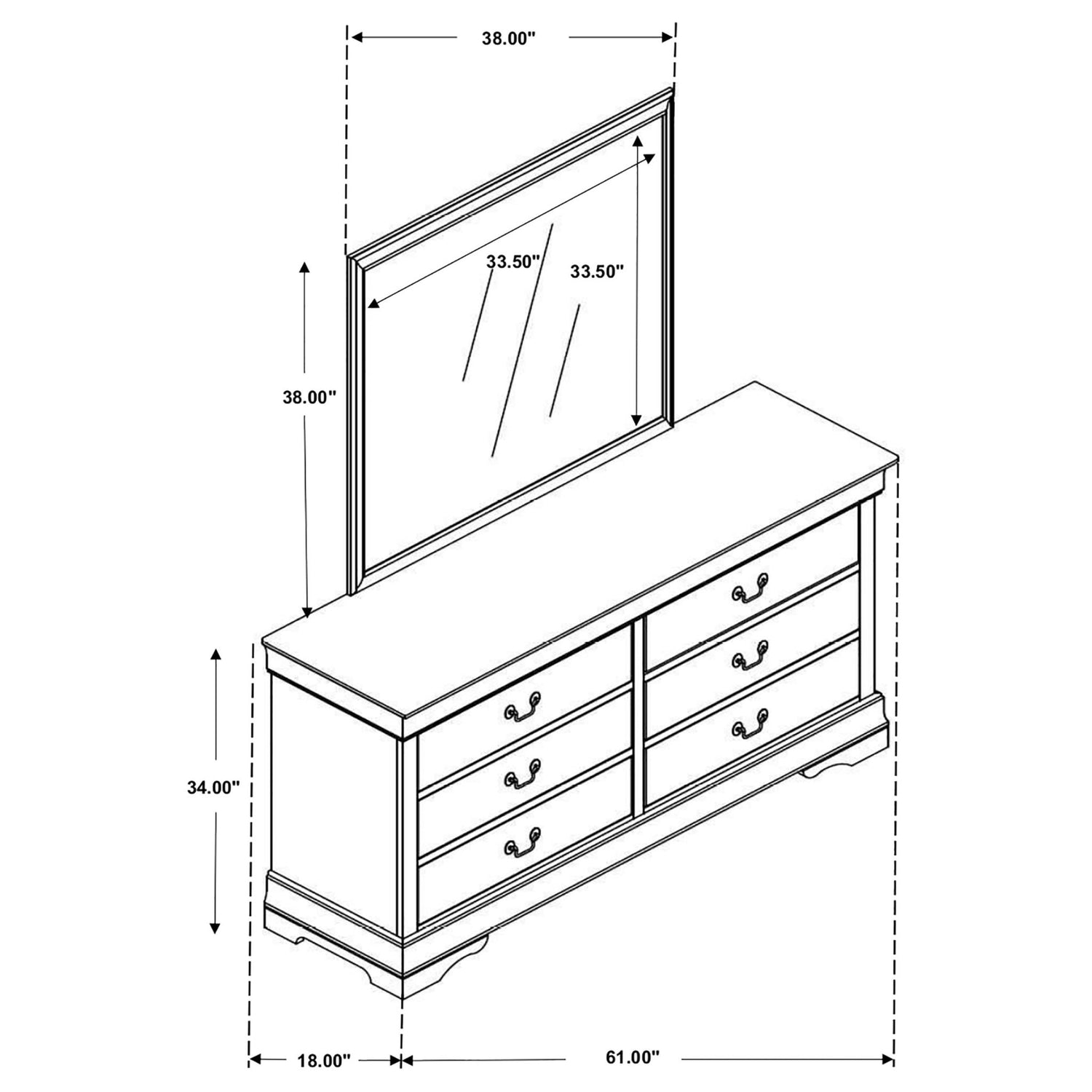 Cómoda Louis Philippe de 6 cajones con espejo, color blanco | Coaster está agotado y se enviará tan pronto como vuelva a estar disponible.
