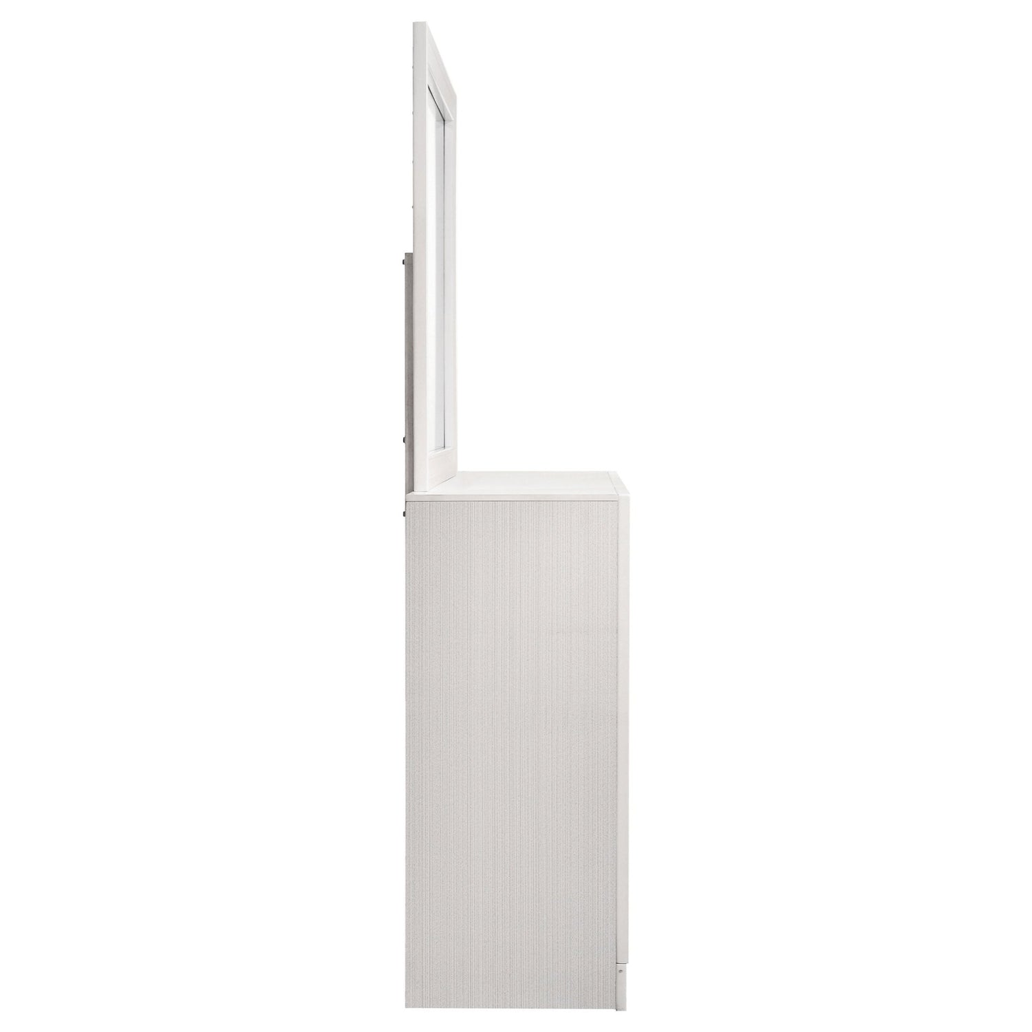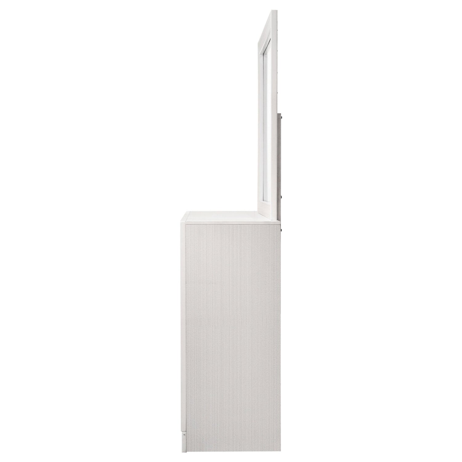Dale un toque sofisticado a tu dormitorio con esta elegante cómoda, diseñada para darle un toque elegante a tu santuario personal. Sus cajones forrados de fieltro ofrecen un lugar seguro para guardar objetos delicados, mientras que el cajón oculto para joyas ofrece un espacio discreto para tus tesoros. El panel brillante del frente brilla con opulencia, realzando el encanto de la cómoda. Complementa la pieza el alegre espejo, cuyo diseño lineal y construcción enmarcada aportan un ambiente elegante. Elige entre varios acabados para complementar a la perfección el diseño de tu dormitorio.