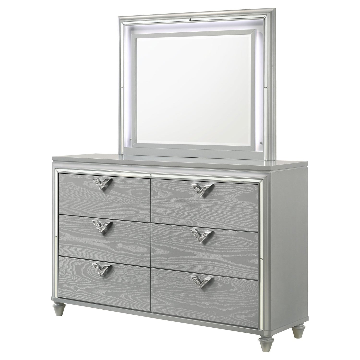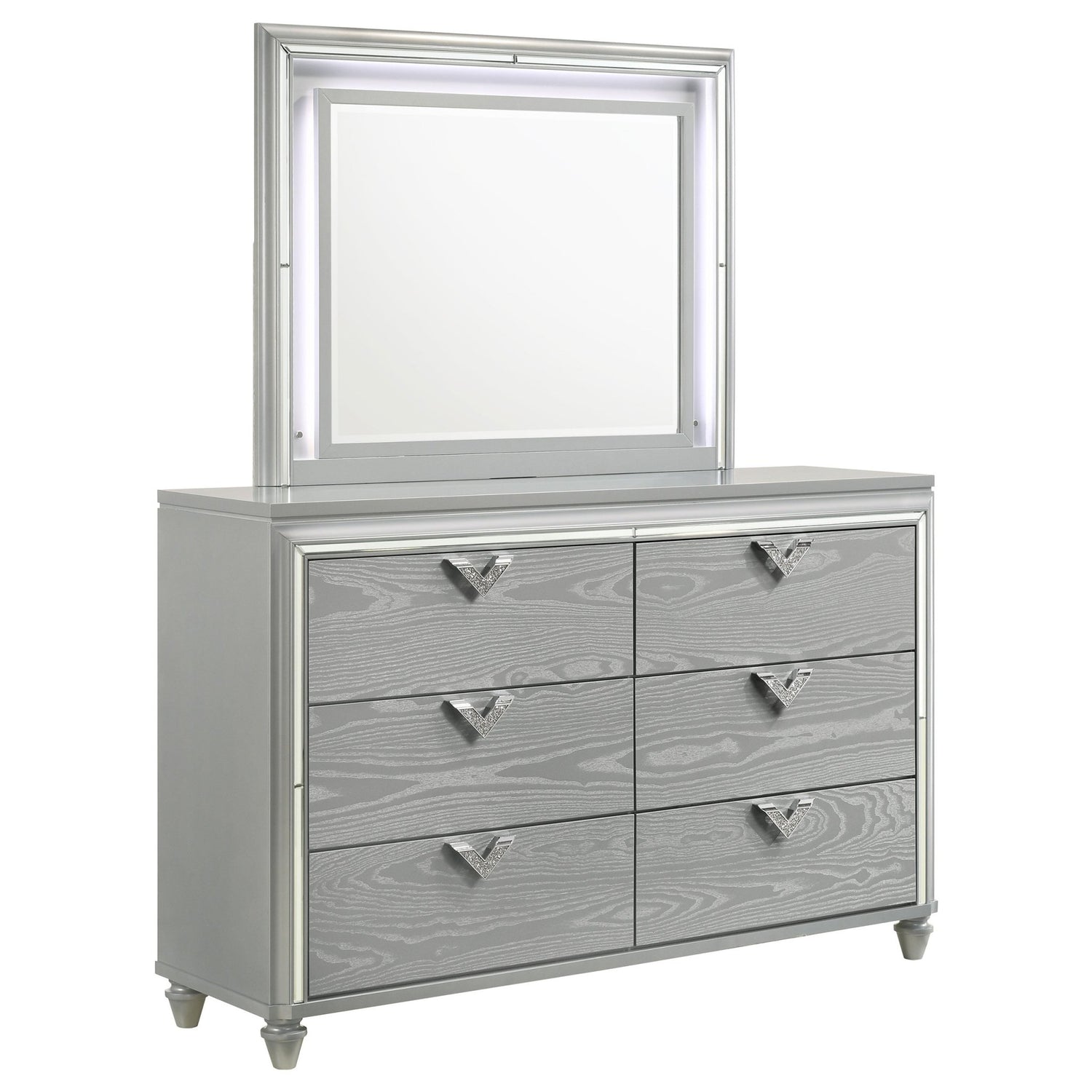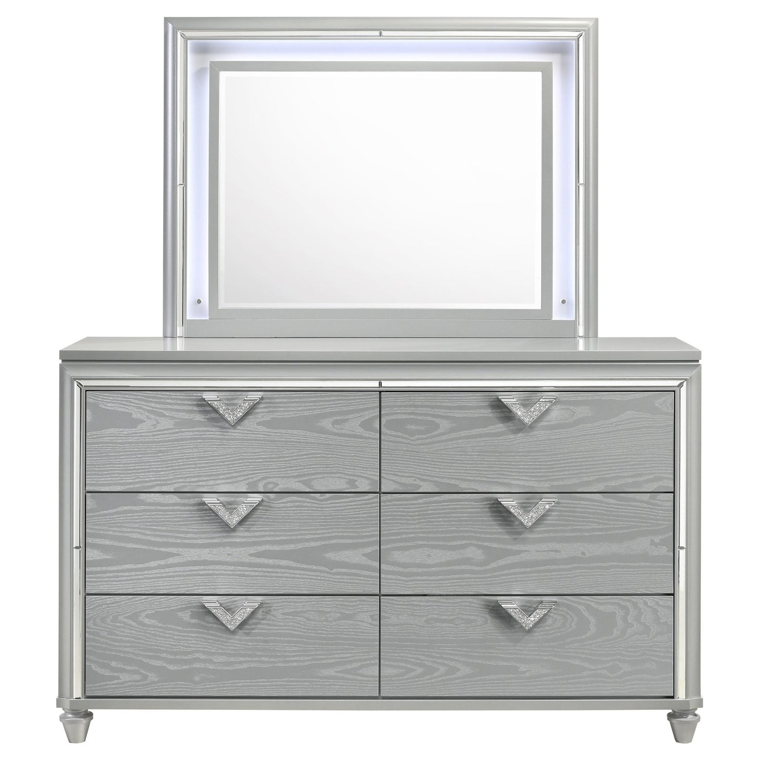 Cómoda Verónica de 6 cajones con espejo, color plateado claro | Coaster está agotado y se enviará tan pronto como vuelva a estar disponible.