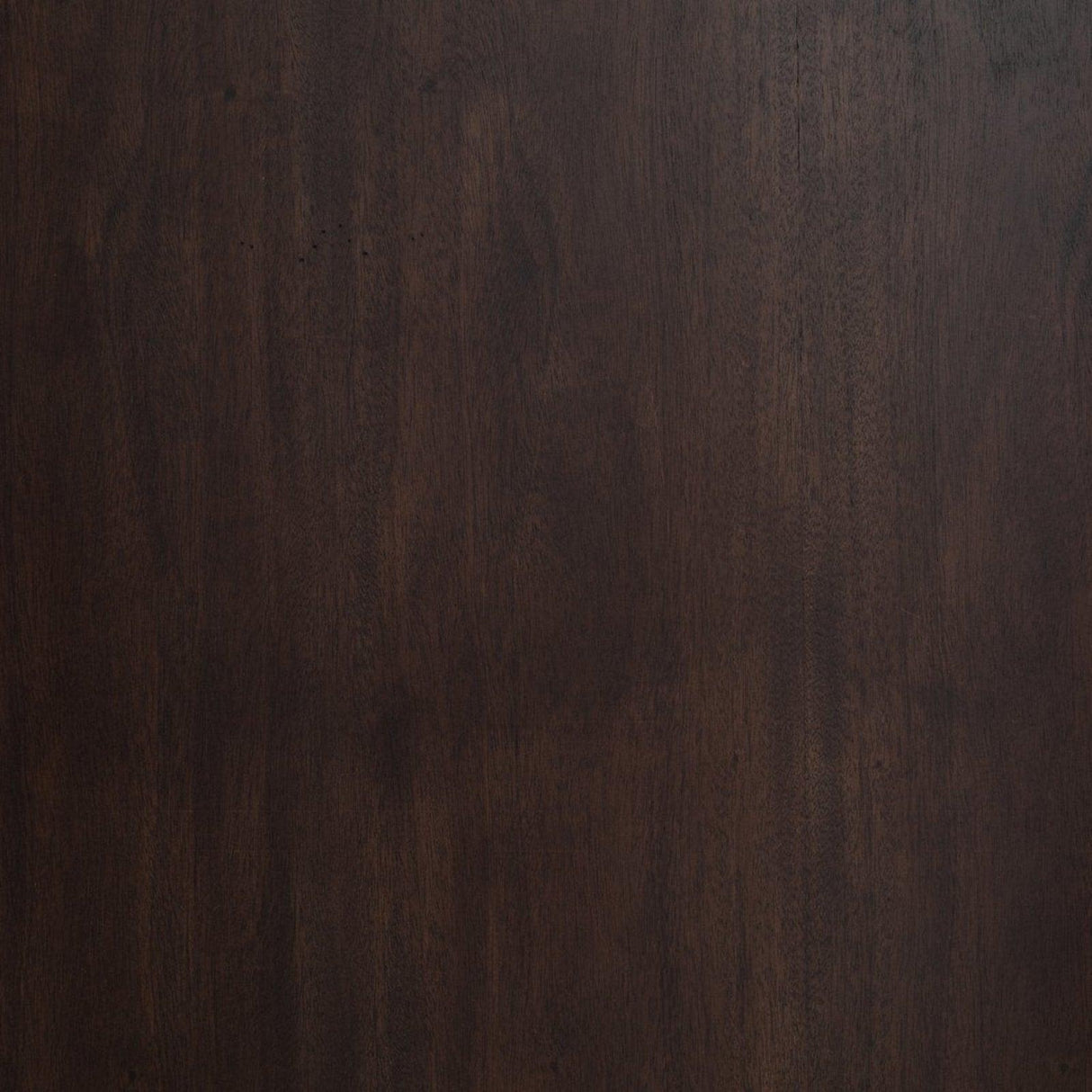 - Los delgados laterales de metal aseguran seis espaciosos cajones de caoba con acabado marrón, para una apariencia moderna con presencia orgánica.