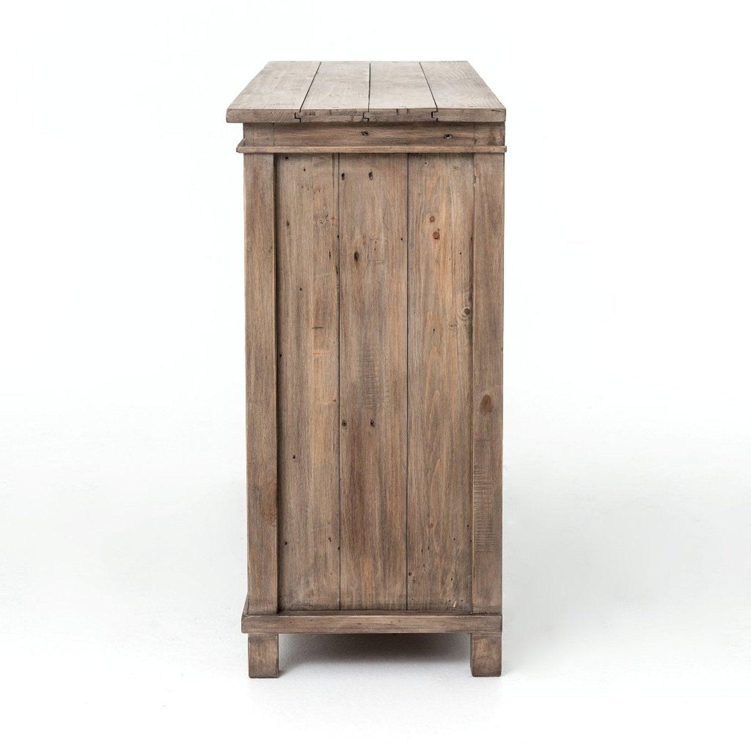 - Una cómoda tradicional de siete cajones hecha de pino recuperado le da la bienvenida a su hogar con líneas fuertes y propias de una casa de campo.