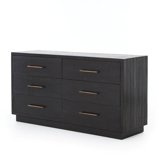• Los herrajes con acabado de latón añaden un toque elegante a seis cajones espaciosos.