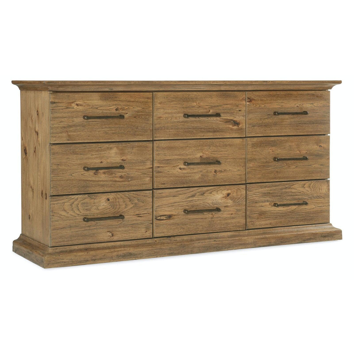 Cómoda Big Sky de nueve cajones con chapa de nogal Pecky, estilo vintage natural – Muebles Hooker