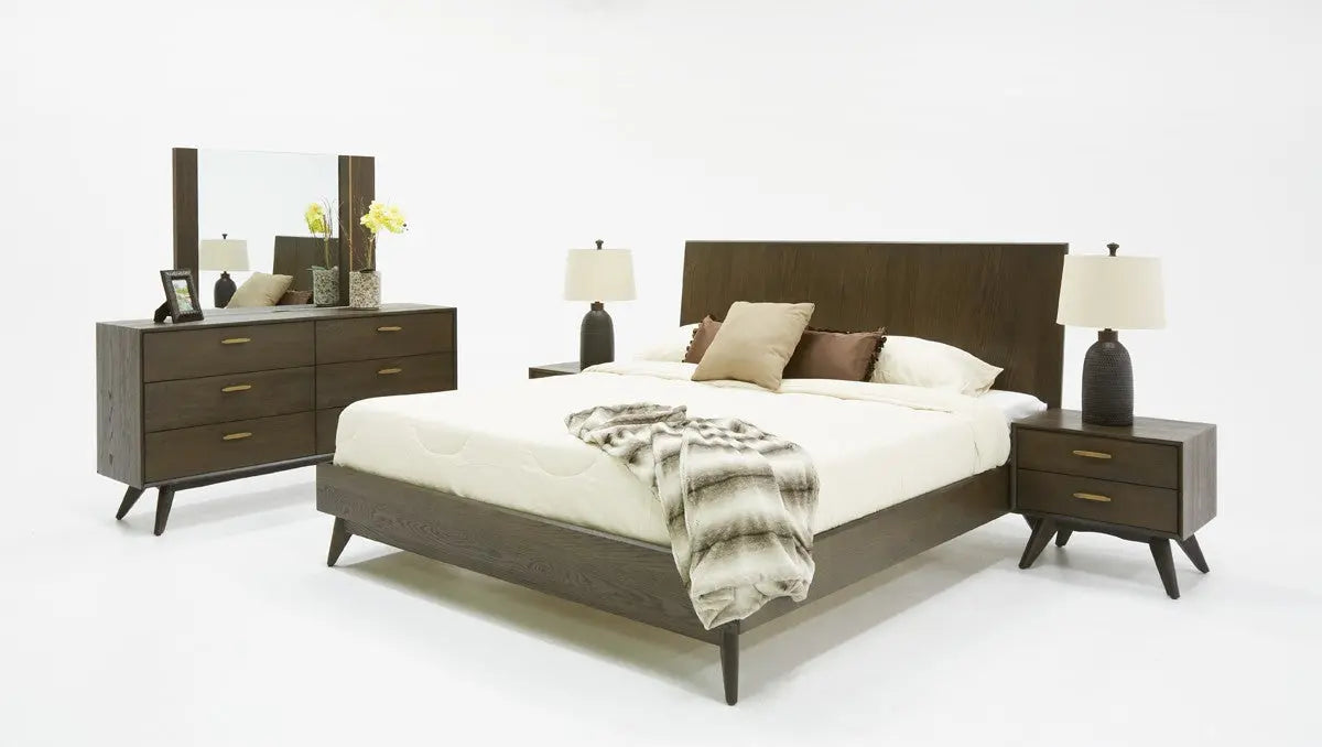Una pieza indispensable para cualquier dormitorio es la mesita de noche moderna Modrest Novak de roble oscuro. Con un atractivo acabado en chapa de roble lavado en gris oscuro, esta mesita de noche ofrece espacio para colocar una lámpara de mesa, un teléfono móvil o incluso un vaso de leche o un refrigerio nocturno. Las vetas de madera en diferentes tonos adornan tanto el exterior como el interior, lo que la hace encantadora. Presenta atractivas vetas que transmiten calidez y tranquilidad. Representando la belleza de la naturaleza, esta cama de roble oscuro cuenta con un somier de láminas empotrado para mantener el colchón ventilado, lo cual es ideal para la higiene. Descanse la espalda y la cabeza mientras lee, escribe o ve una película en su cabecero suave y confiable de altura media. Las patas cónicas de roble macizo elevan esta moderna cama de excelente calidad del suelo, dejando espacio para facilitar su limpieza.