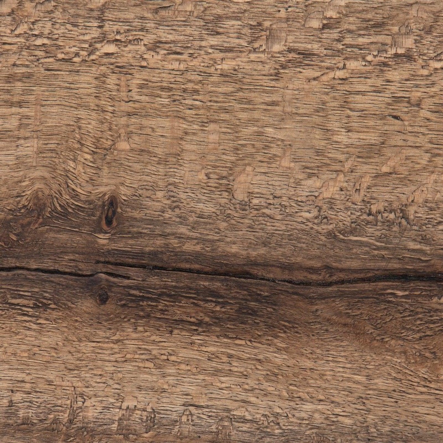 - Fabricada en roble recuperado con patas de hierro modernas, esta consola señorial de líneas limpias presenta un hueco horizontal que le da una apariencia de ligereza y movimiento.